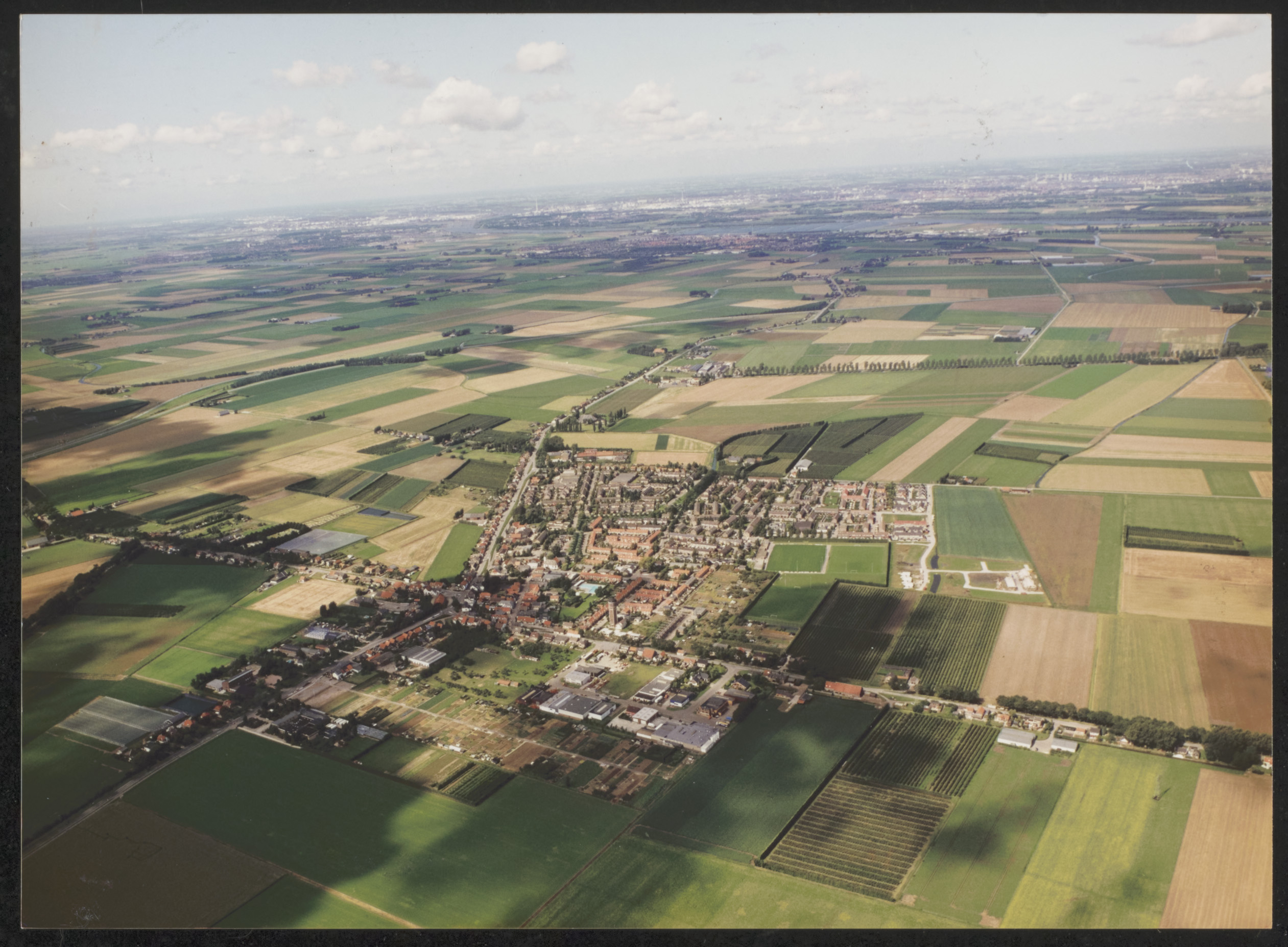 Luchtfoto van Klaaswaal. In het midden de kruising van de Rijksstraatweg (onder), de …