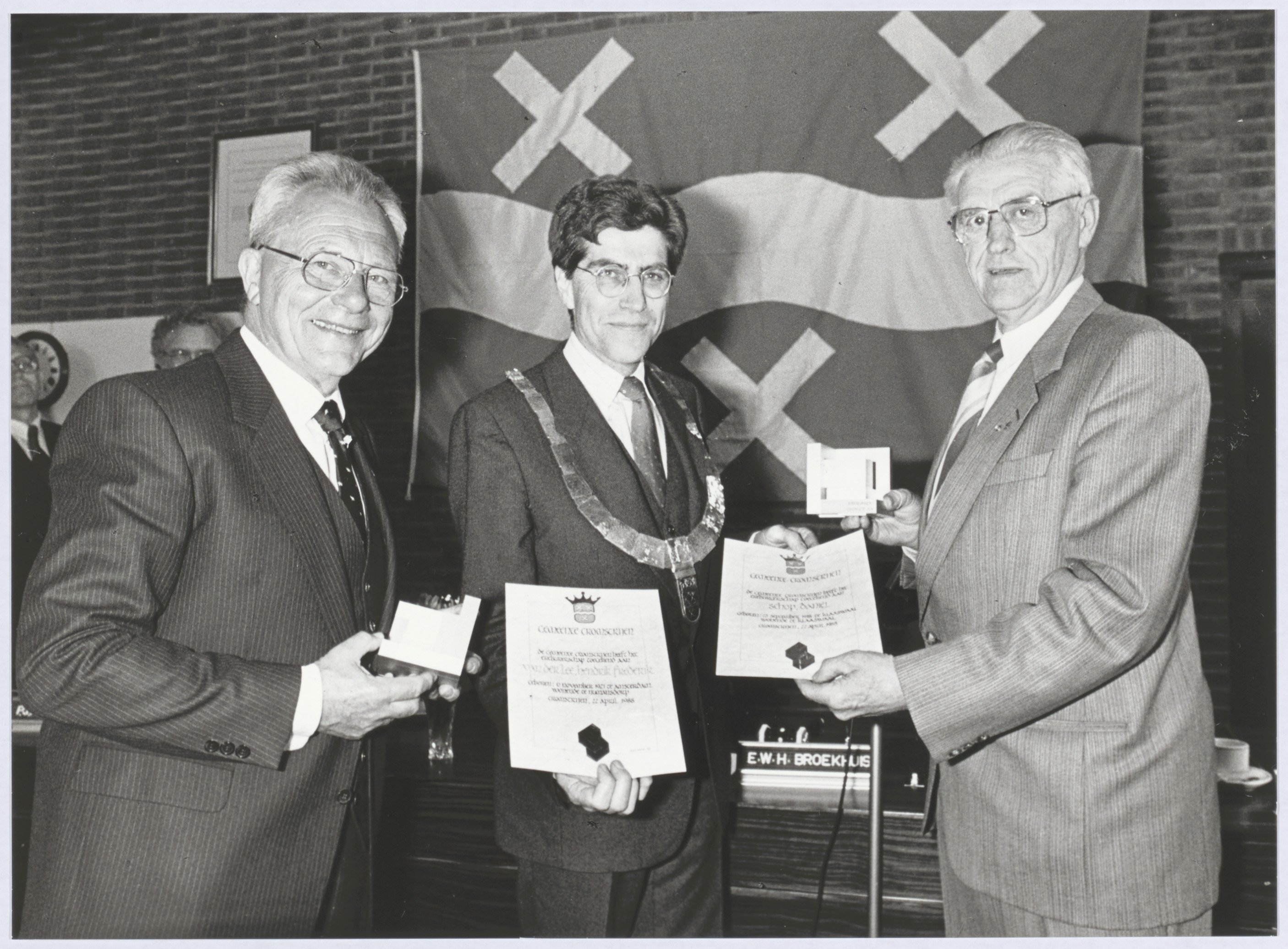 Uitreiking van oorkonden door burgemeester Bert Broekhuis van Cromstrijen.
