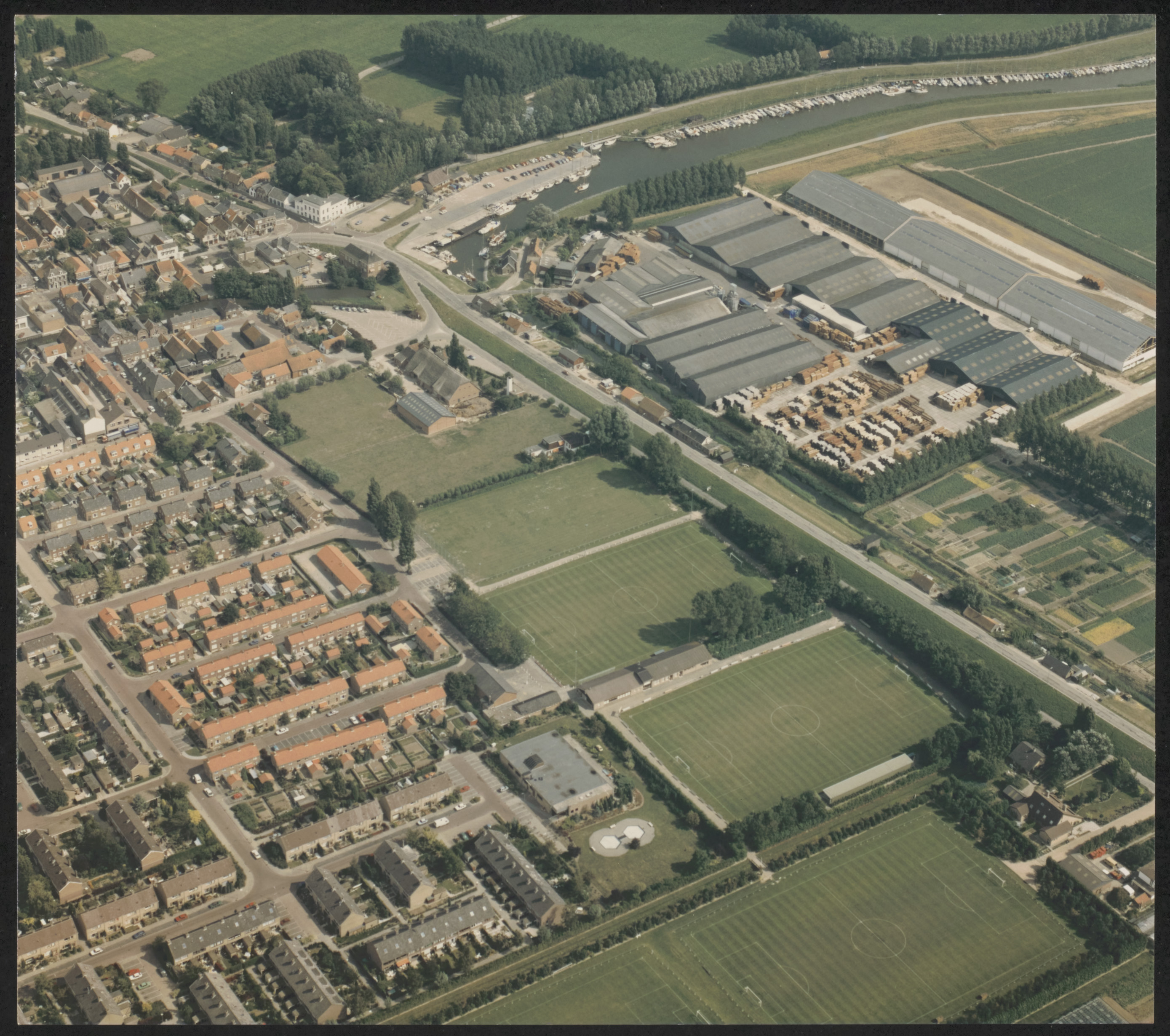 Luchtfoto van Numansdorp met rechtsboven de Dorpshaven en daaronder de Molendijk …