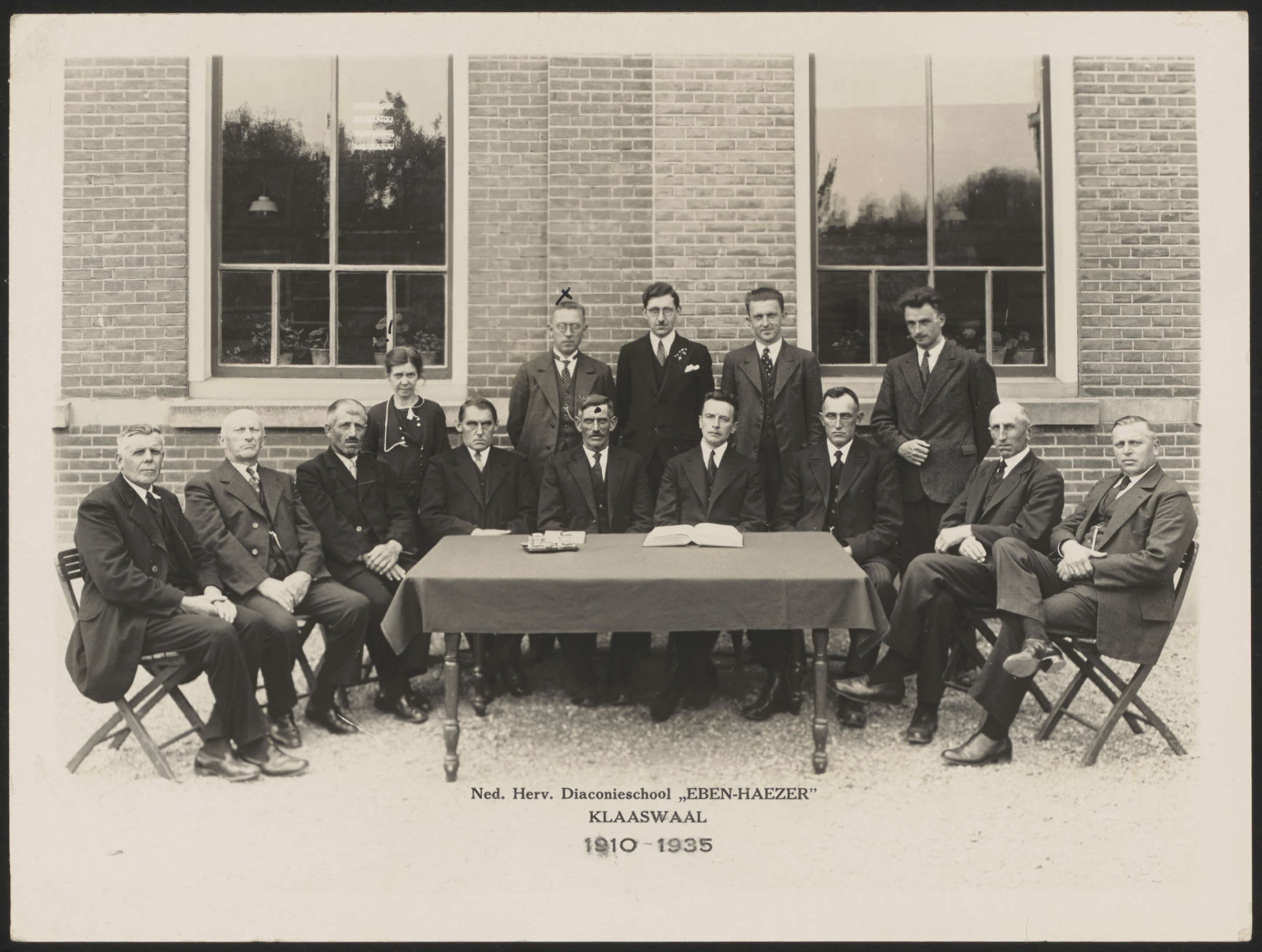 Gezelschap voor de Christelijke school Eben-Haëzer aan de Oud Cromstrijensedijk Westzijde in Klaaswaal.