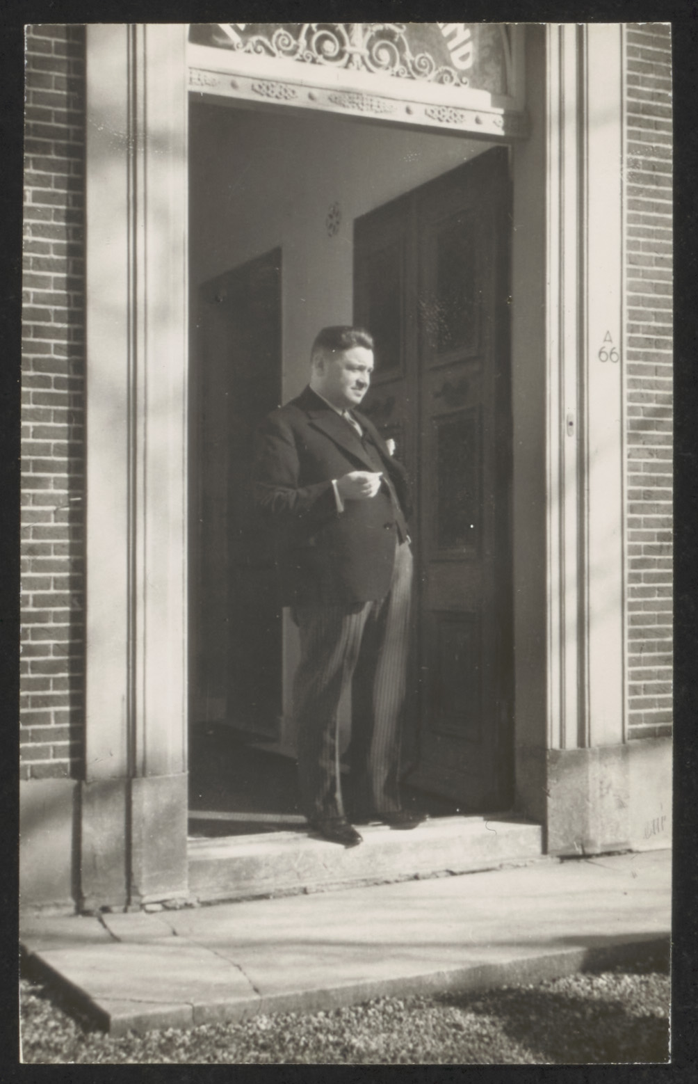 - Burgemeester Ter Kuile in de deuropening van zijn huis, het latere gemeentehuis, aan de Raadhuislaan in Mijnsheerenland.