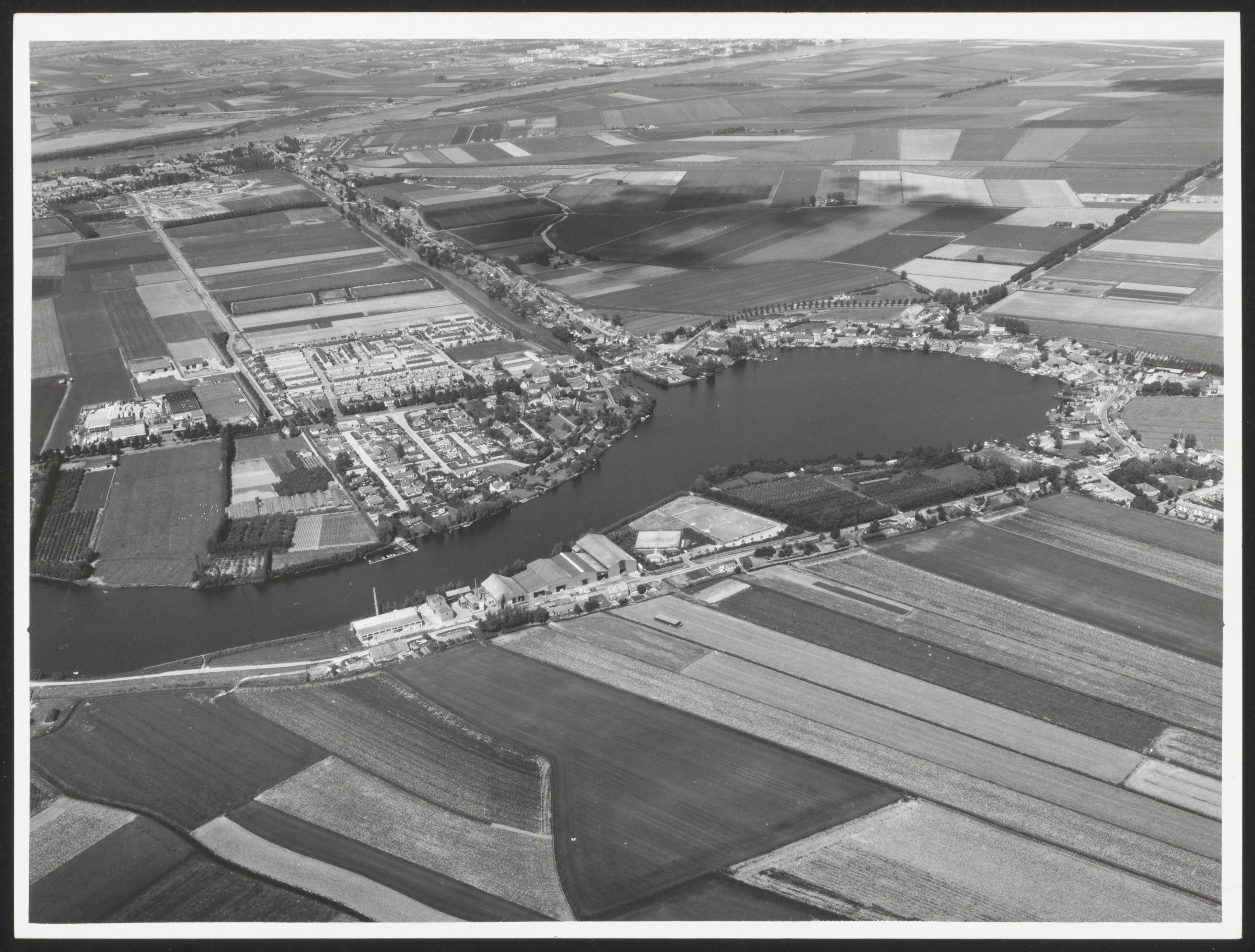 Maasdam met de Binnenbedijkte Maas gezien in Noord/Ooostelijke richting 1977