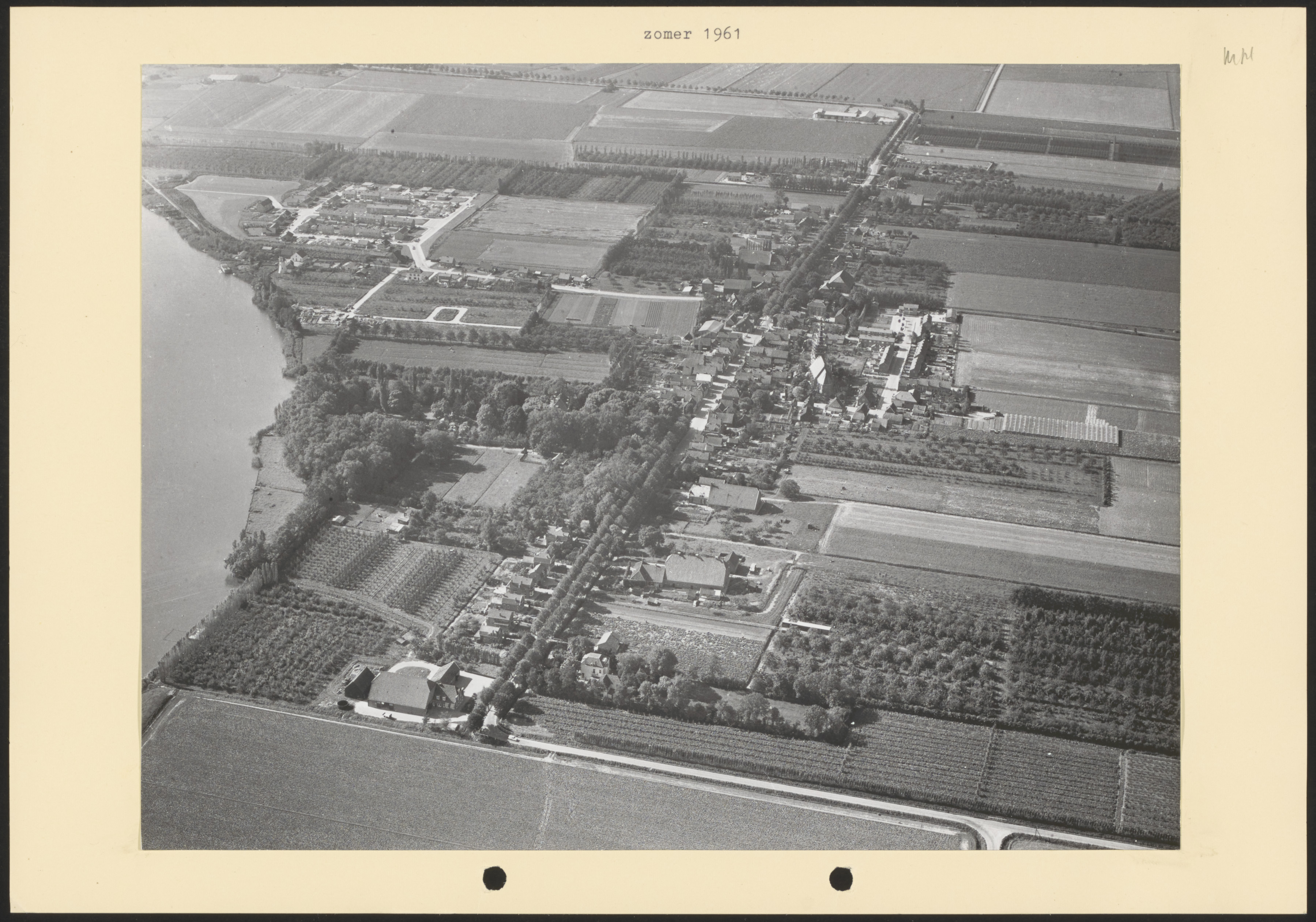 Mijnsheerenland met de Binnenbedijkte Maas gezien in Westelijke richting 1961