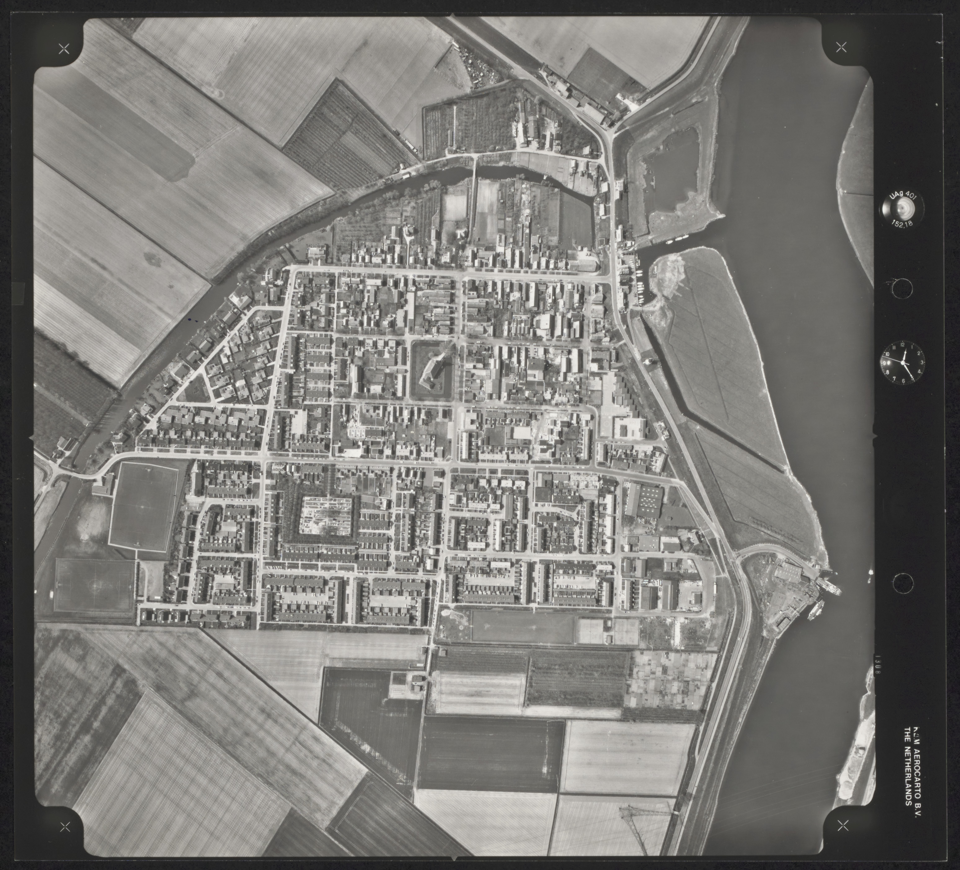 Nieuw Beijerland met rechts het Spui gezien in Westelijke richting 1980.