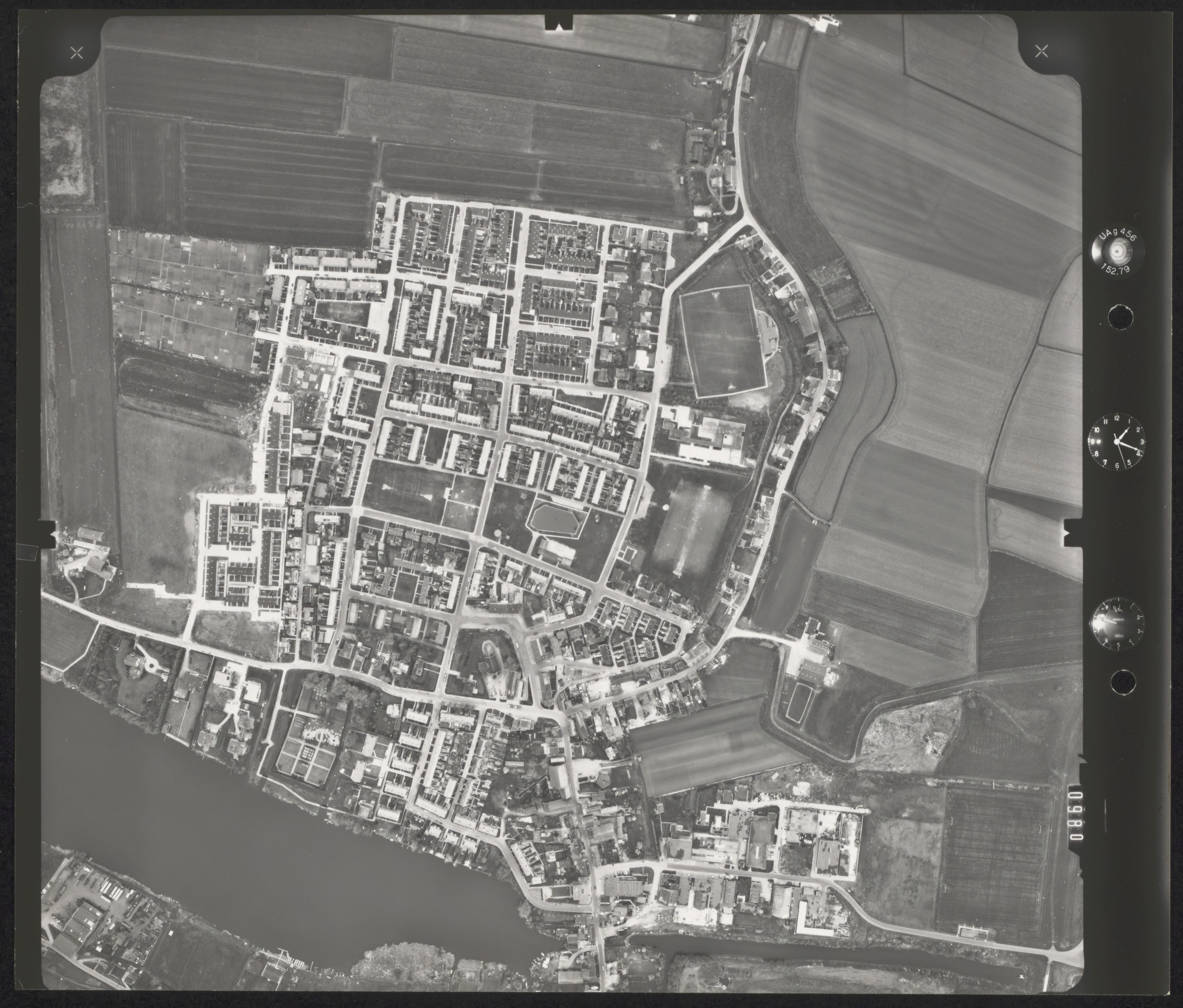 Heerjansdam met links onder het Waaltje gezien in oostelijke richting 1973