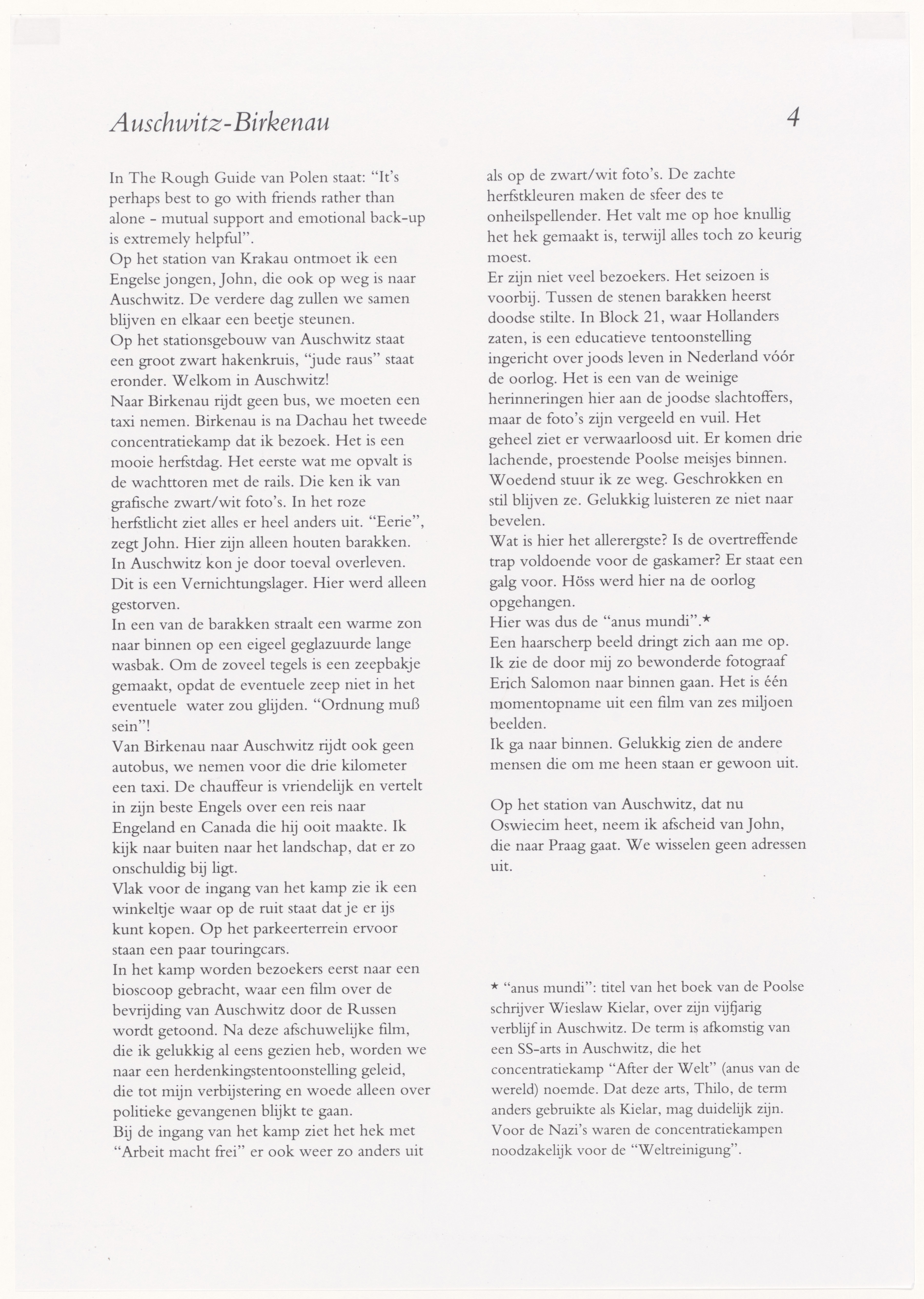 - Tekst over Auschwitz-Birkenau gemaakt voor een tentoonstelling van Anna Pool