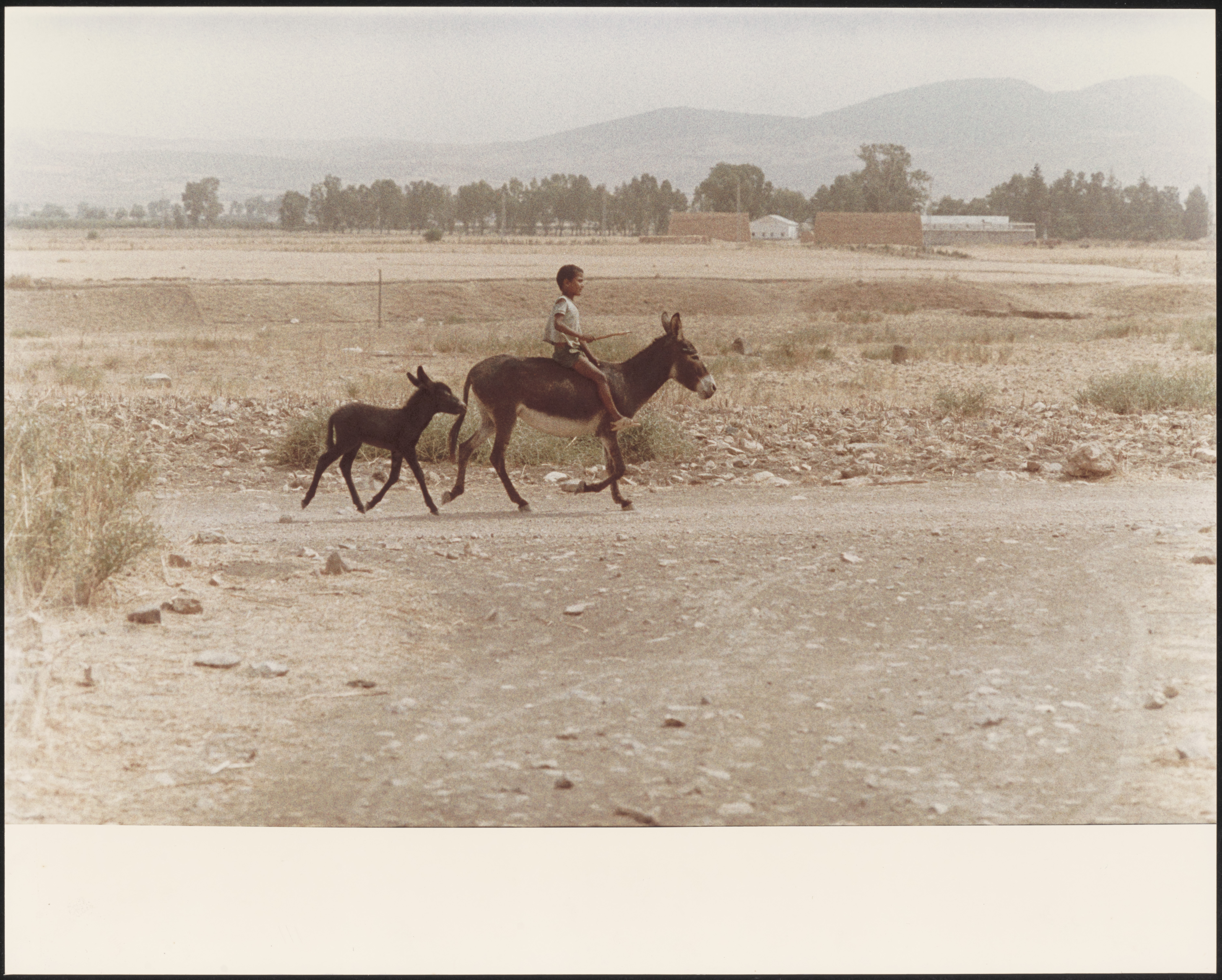 - Straatbeeld in Tunesië met een jongen op een ezel