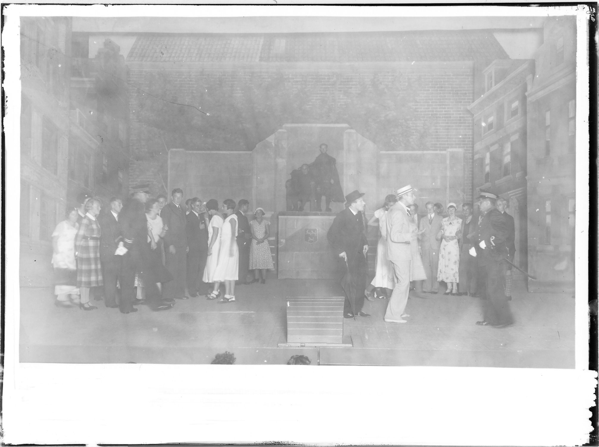 Revue DFC in decor met standbeeld gebr. De Witt op Visbrug