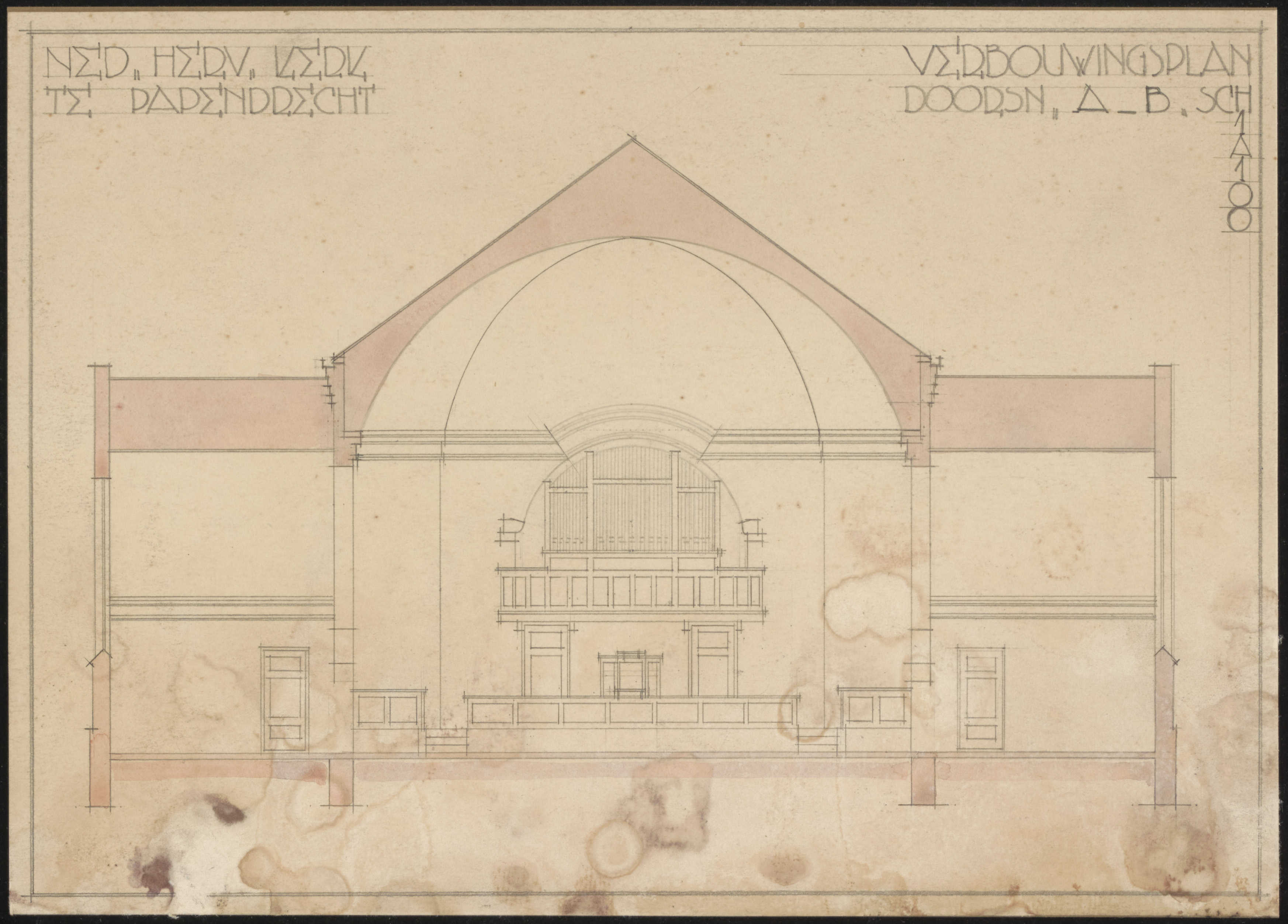 verbouwingsplan Ned. Hervormde kerk te Papendrecht (doosnede A-B
