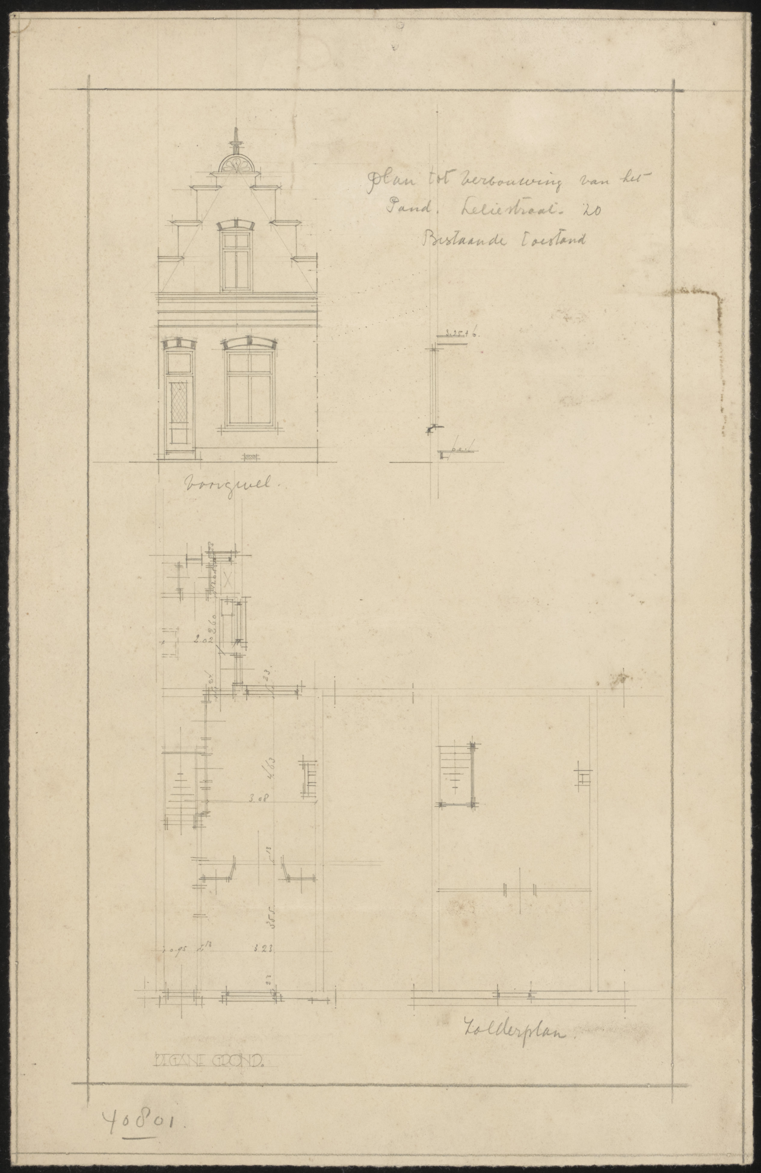 Plan tot verbouwing van het pand Leliestraat 20 (toen bestaande situatie).
