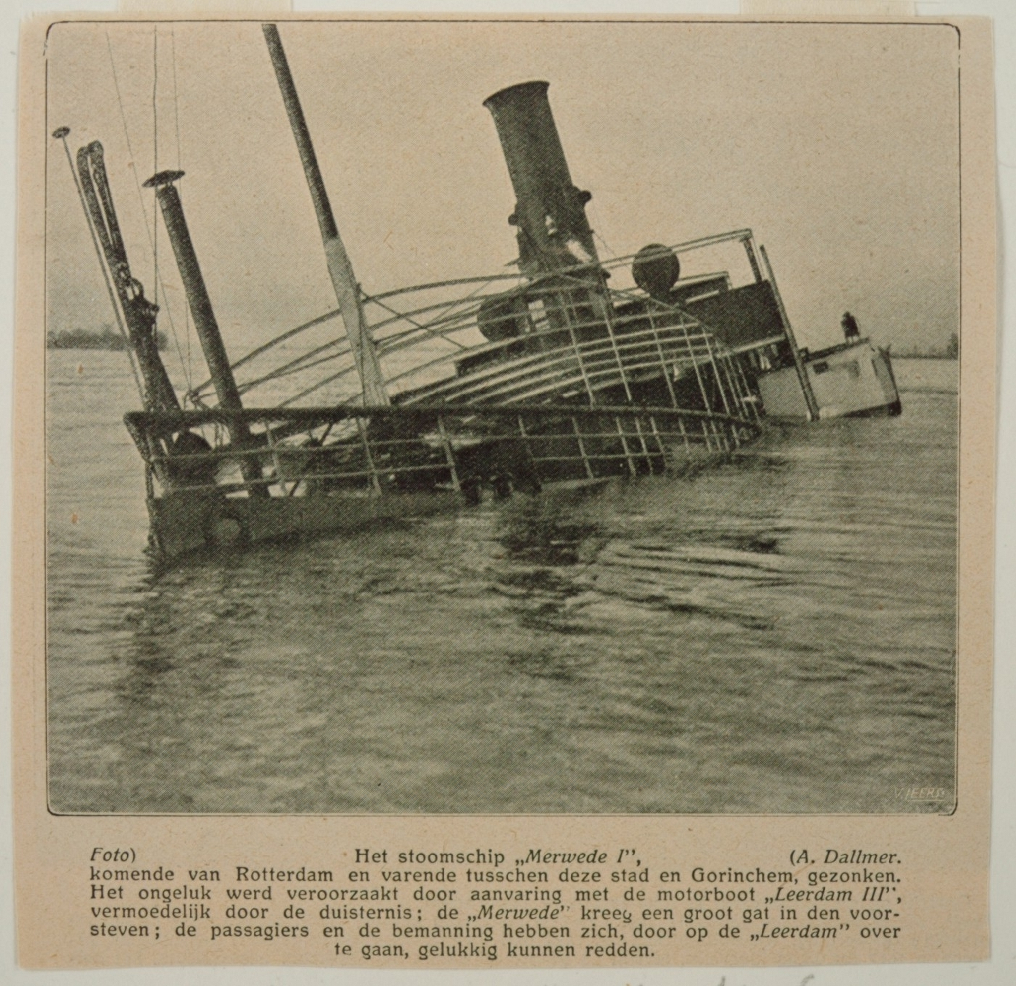 - Het half gezonken stoomschip Merwede I; na een aanvaring met vrachtboot Leerdam III in de Merwede op 2 januari 1914
