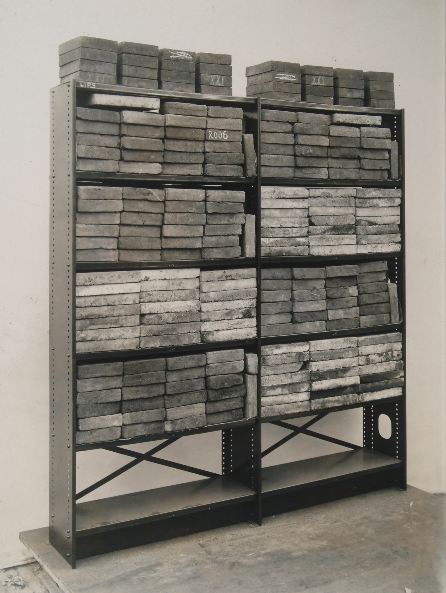 - Stalen boekenrekken van de firma Lips o.a. geleverd aan de gemeentehuizenvan Den Haag en Voorschoten Met stenen als belastingproef