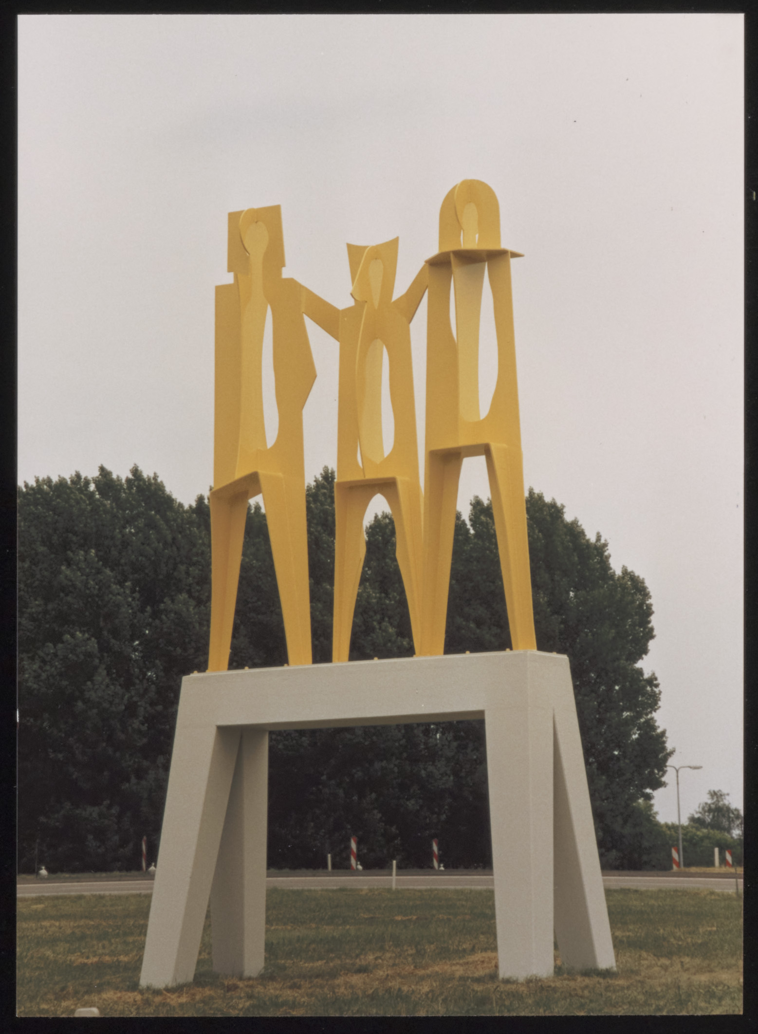 Het door Piet Kraus en Cor van Gulik ontworpen schapenkop-monument.