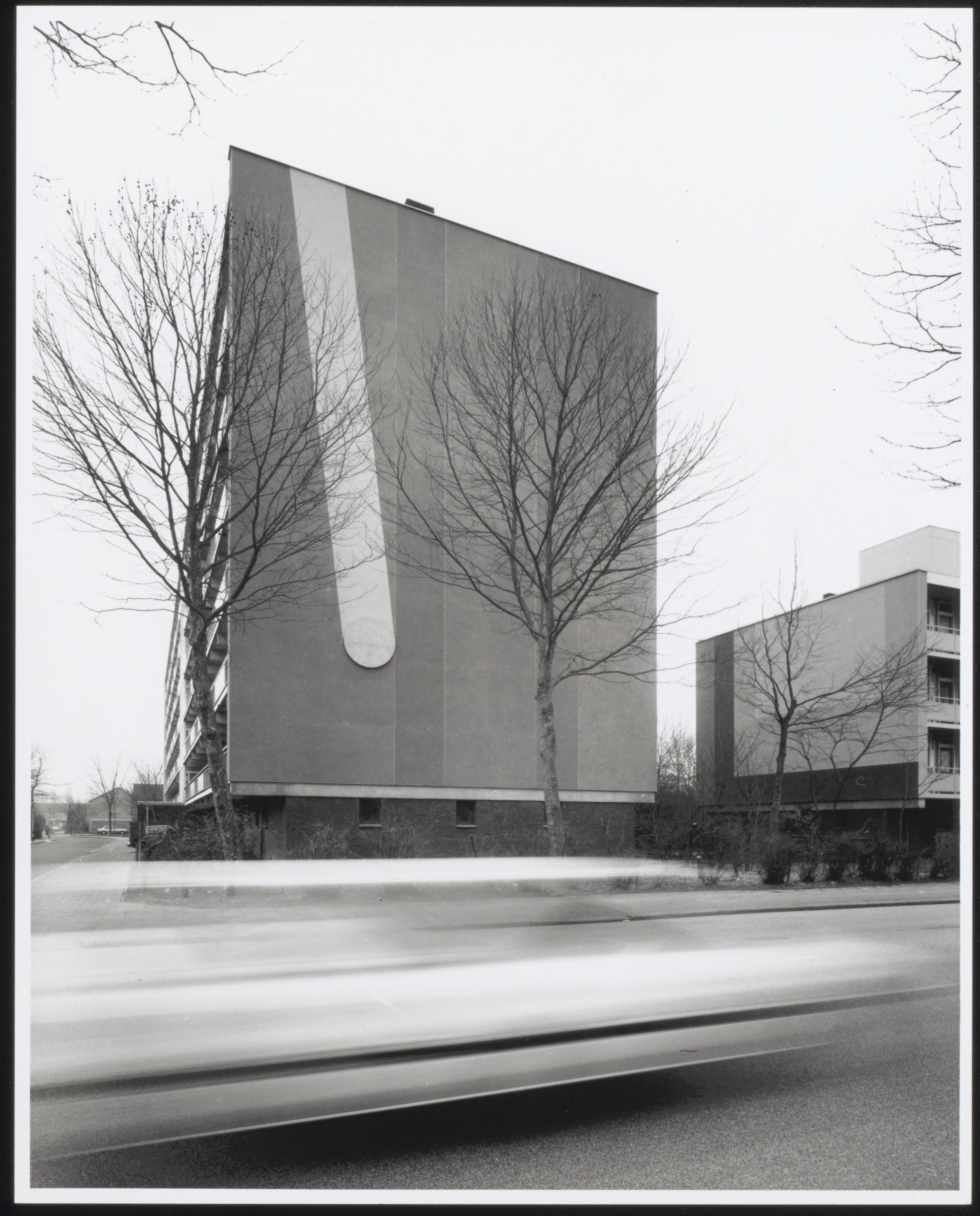 - Flat in de Regenboostraat op de hoek van de Blaauwweg (voorgrond).