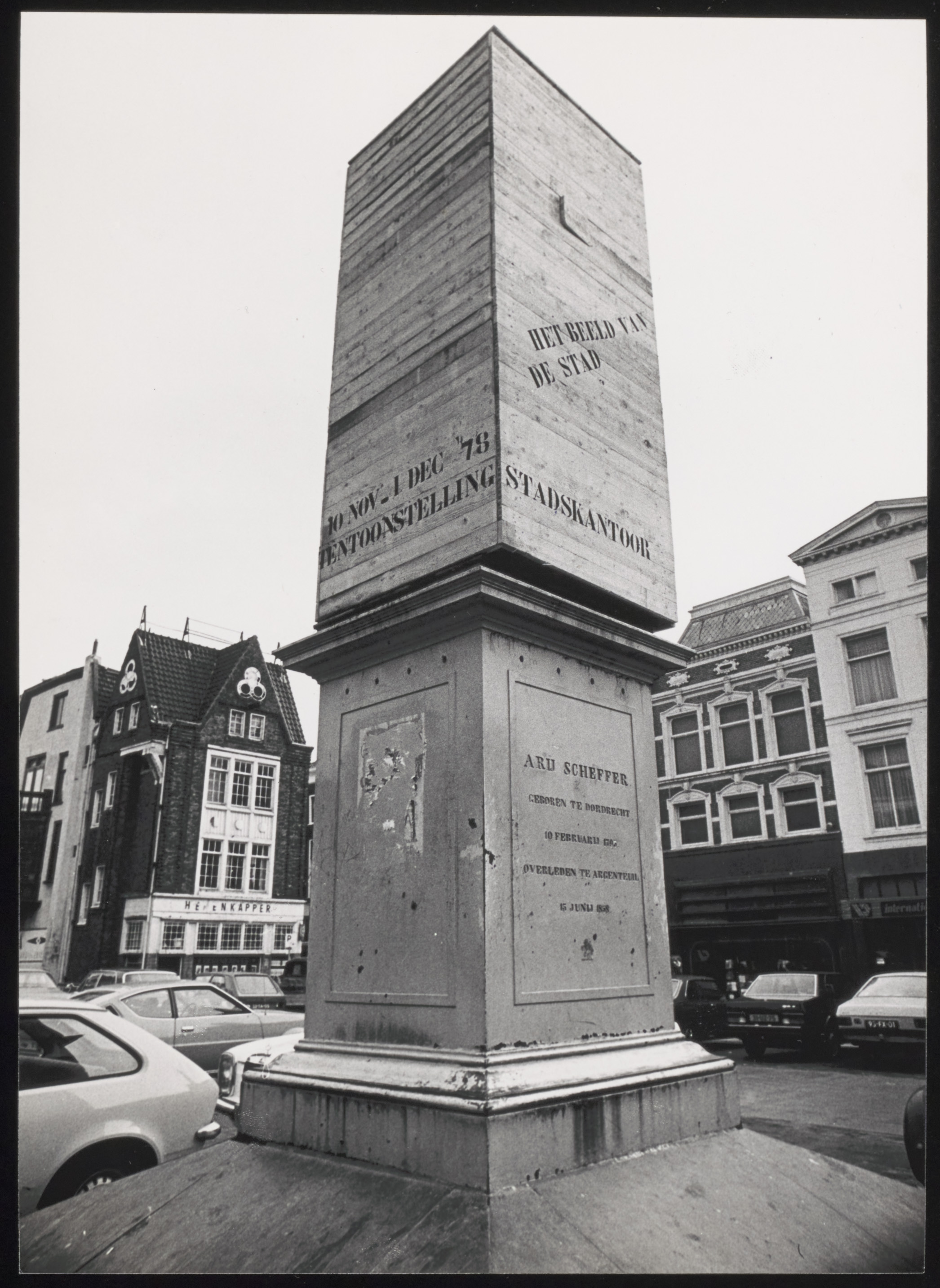 - Ingepakt standbeeld van Ary Scheffer op het Scheffersplein i.h.k.v. een beeldendekunstmanifestatie.