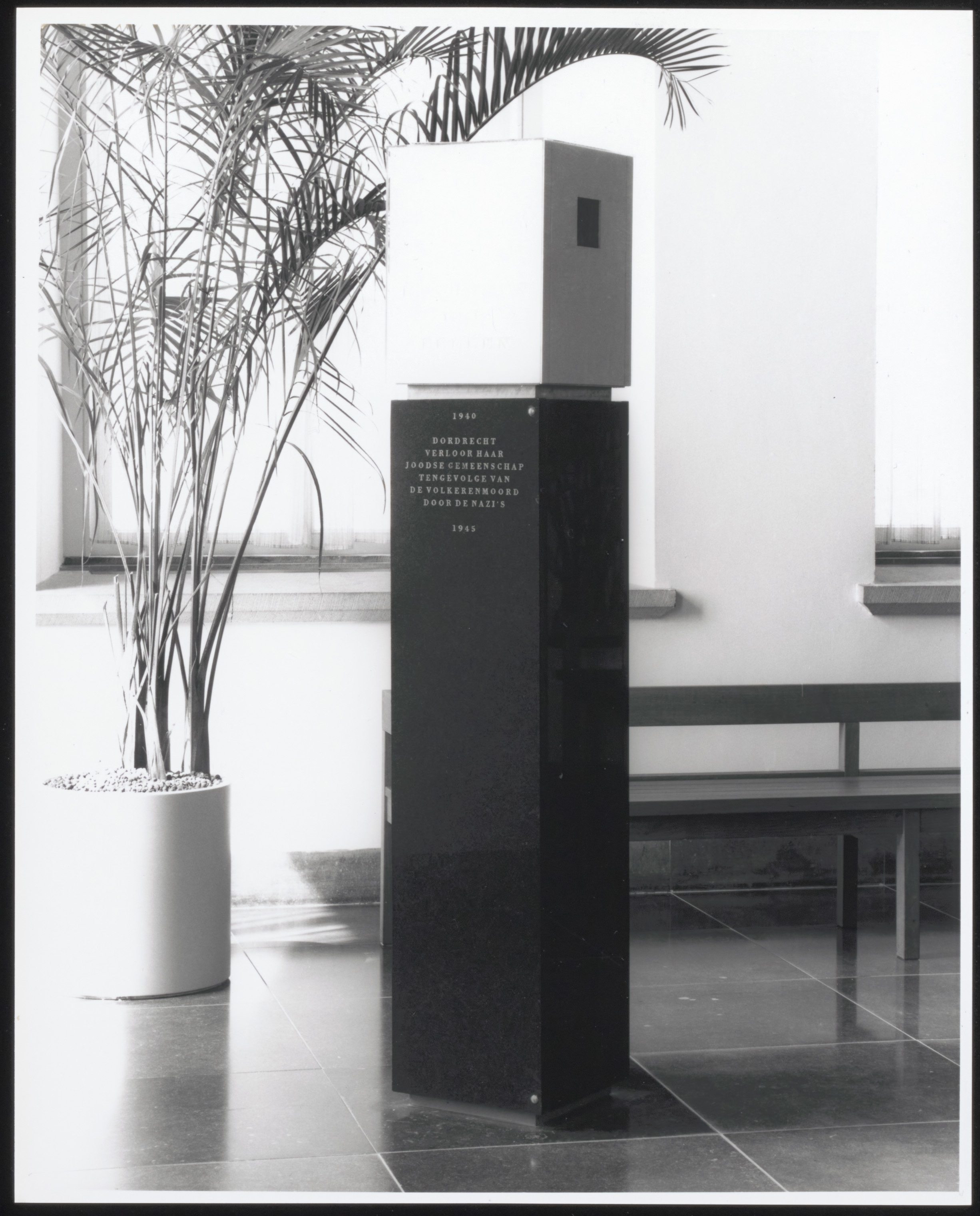 - Monument ontworpen door beeldend kunstenaar Jurriaan Schrofer in de hal van het stadhuis ter herinnering aan de deportatie van de 221 Joodse Dordtenaren in de jaren 1940-1945.