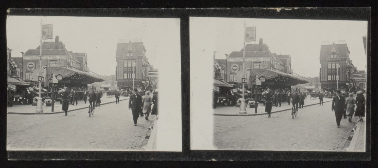 - Stereofoto van de Voorstraat en het Scheffersplein.