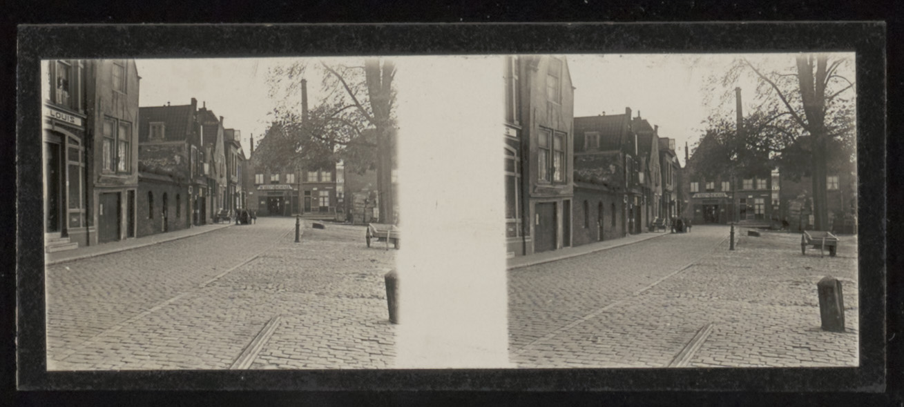 Stereofoto van de Keizershof, gezien richting Kleine Kalkstraat.