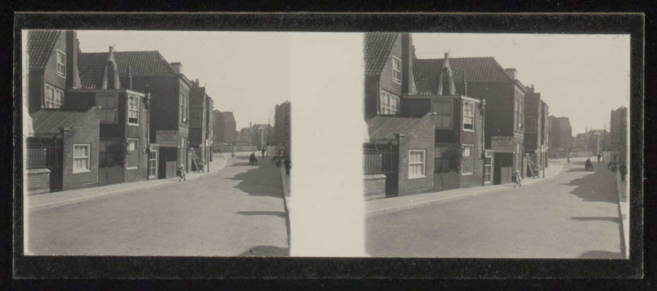 - Stereofoto van Elfhuizen richting Bagijnestraat (vóór de aanleg van het Bethlehemplein).
