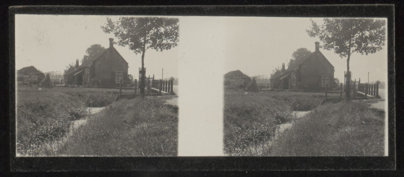 Stereofoto van hoeve Stadtvlied bij de kruising Krispijnseweg (voorgrond) - Oudendijk - Brouwersdijk.