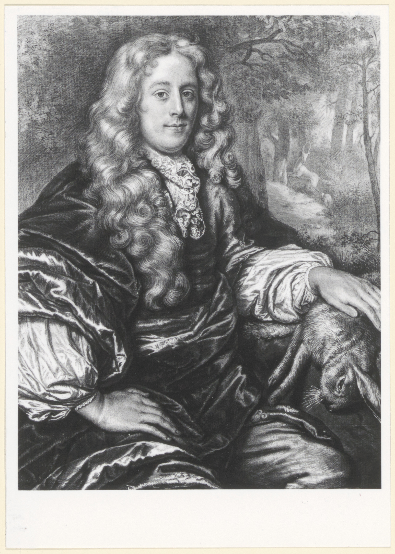 - Mr. Barthout van Slingelandt (1654-1711, raad, schepen en burg. van Dordrecht, gezant, afgevaardigde van de Staten Generaal en Raad van State, gehuwd met Elisabeth van Bleyswijck), getekend met rechterhand op rechterdij, linkerarm op aarden wal, linkerhand rust op dode haas, met allongepruik, op de achtergrond een woud waarin rechts een door een hond aangevallen hert wegspringt.