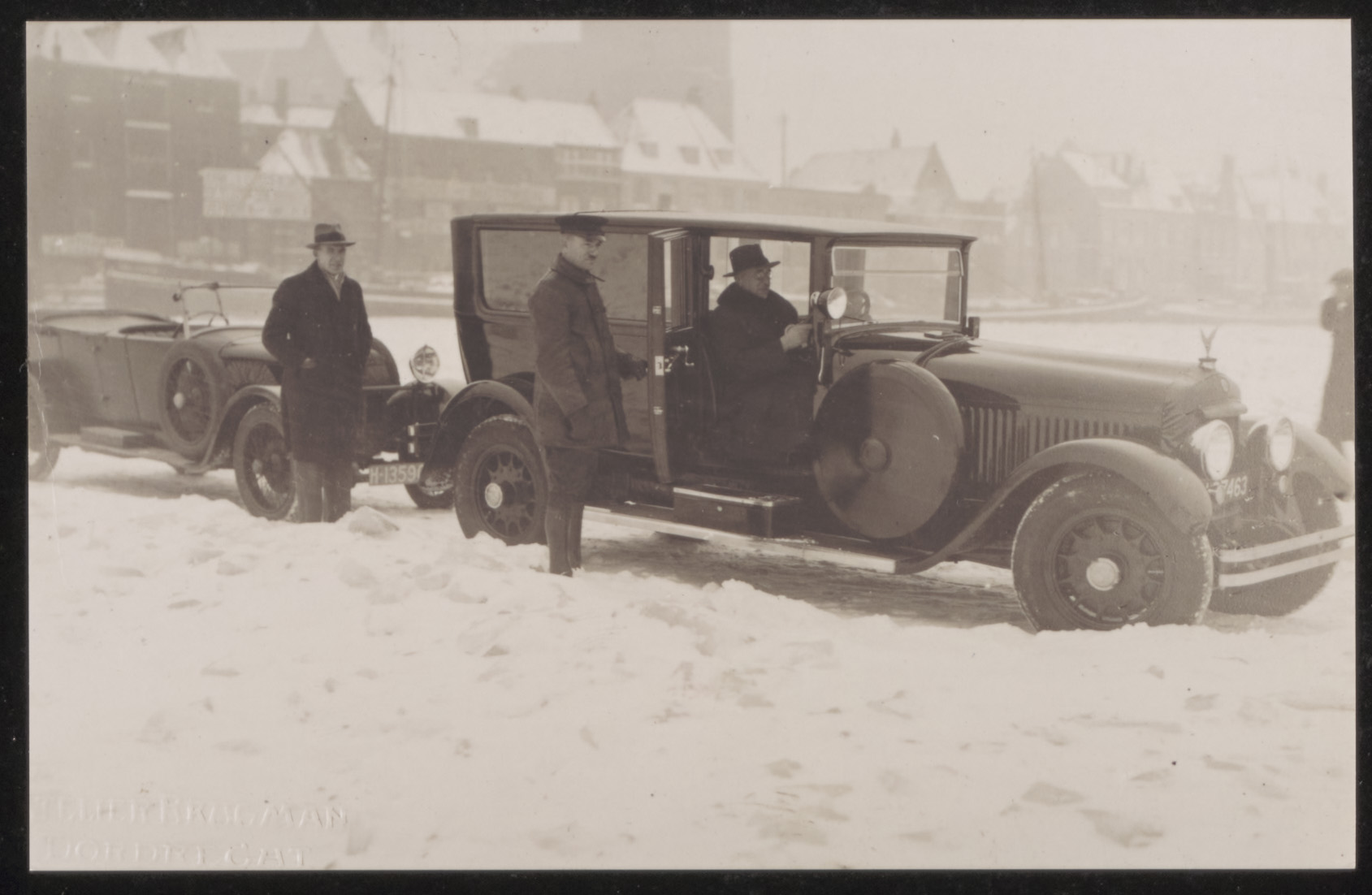 Oldtimers op de dichtgevroren Oude Maas t.h.v. de Hooikade.