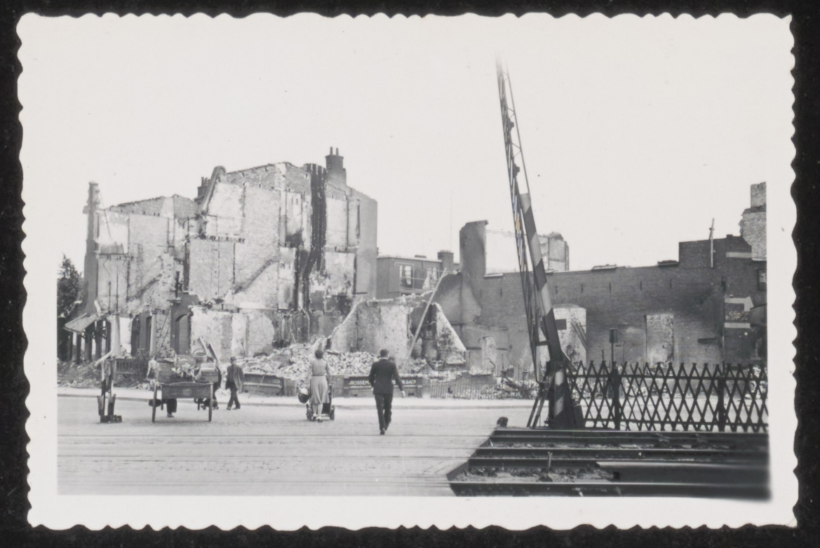 - beschietingen handkarren kinderwagens oorlogsschades overwegen / spoorwegovergangen Tweede Wereldoorlog voetgangers
