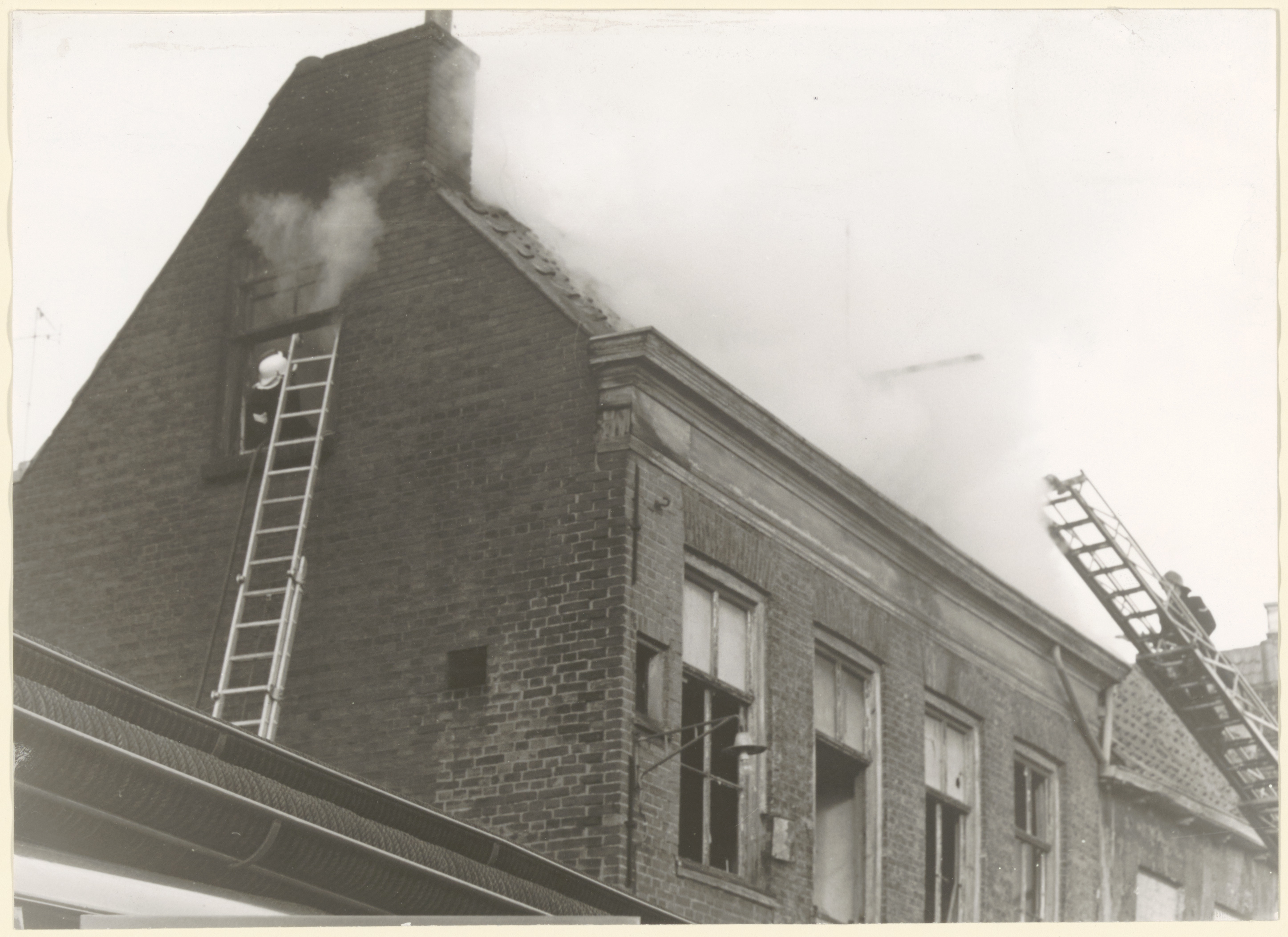 - De brandweer in actie bij een zolderbrand in het pand Steenstraat nr. 3/5.