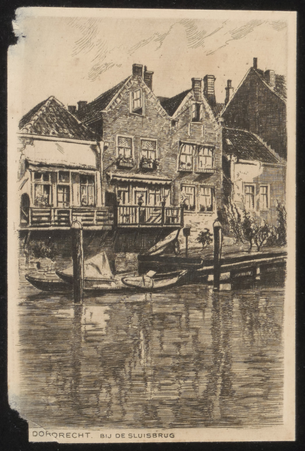 Tekening Kalkhaven bij de Sluisbrug met de woningen aan de Kleine kalkstraat.