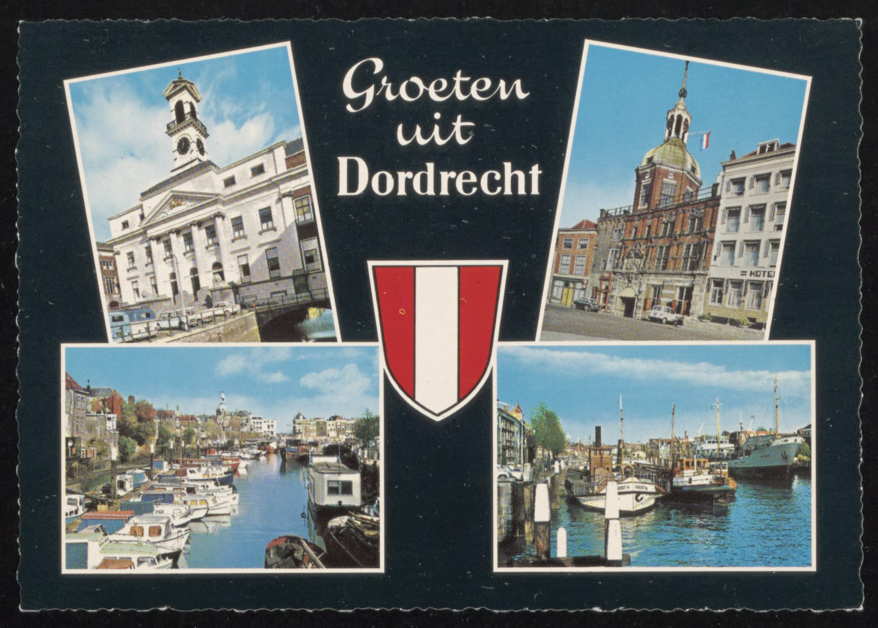 LB: Stadhuis. RB: Groothoofd. LO: Wijnhaven. RO: Nieuwe Haven vanaf Houttuinen.