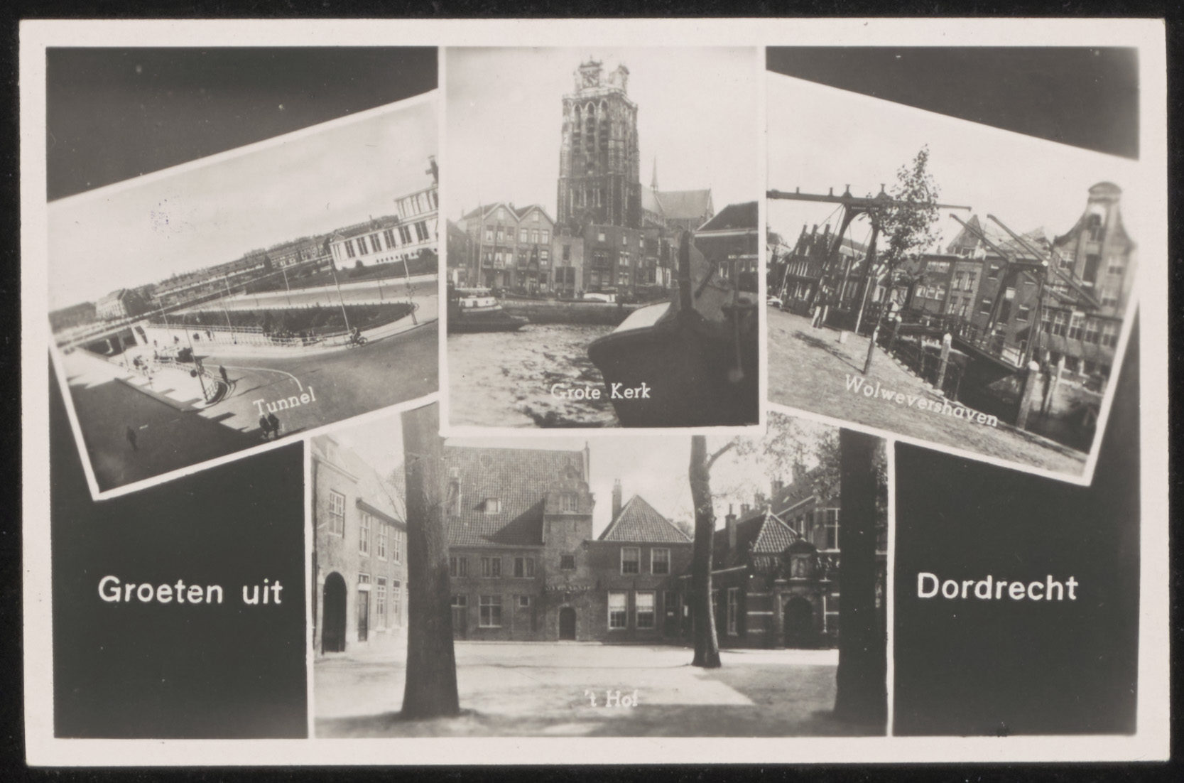 L:kRISPIJNTUNNEL. m: Grote Kerk. R: Wolwevershaven met Damiatebrug. O: 't Hof.