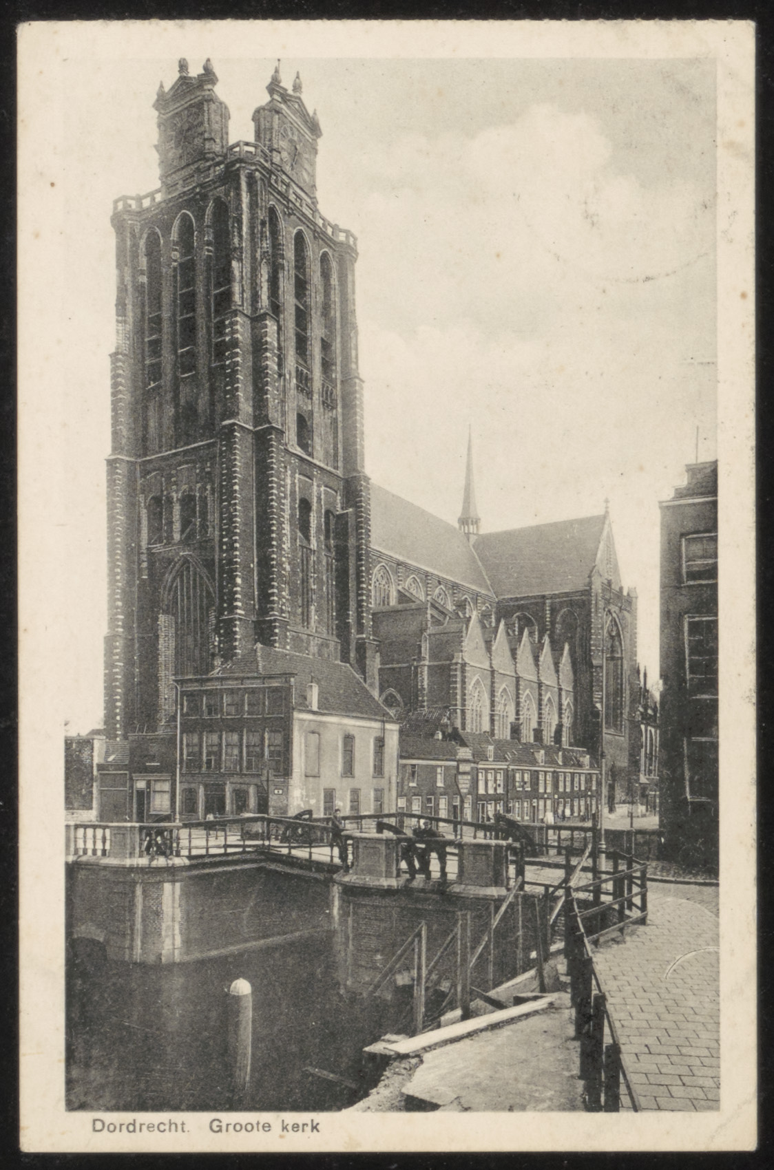 De Grote kerk gezien vanaf de Bomkade met de Leuvebrug op de voorgrond.