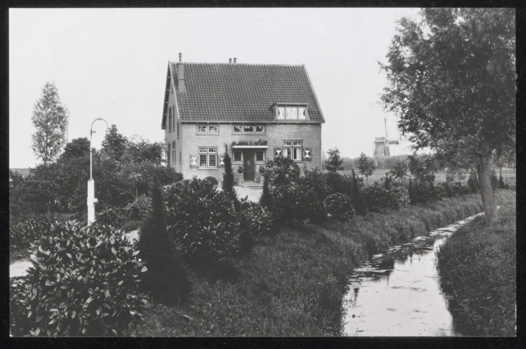 Het landhuis Zonnehoeve in de hoek tussen de Krommedijk en de Crayensteynstraat. Op de achtergrond de korenmolen Willem II aan de Krommedijk.