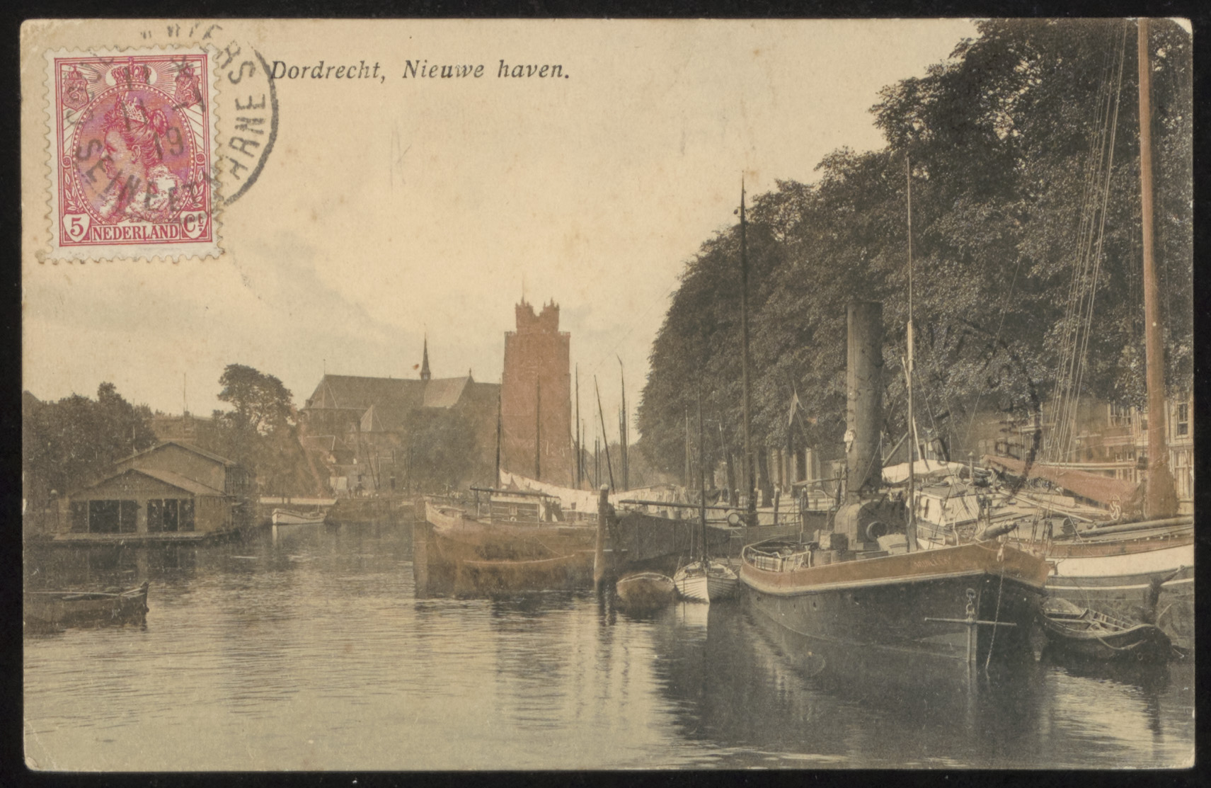 - Nieuwe Haven richting Grote kerk. Links het botenhuis van de roei- en zeilvereniging.
