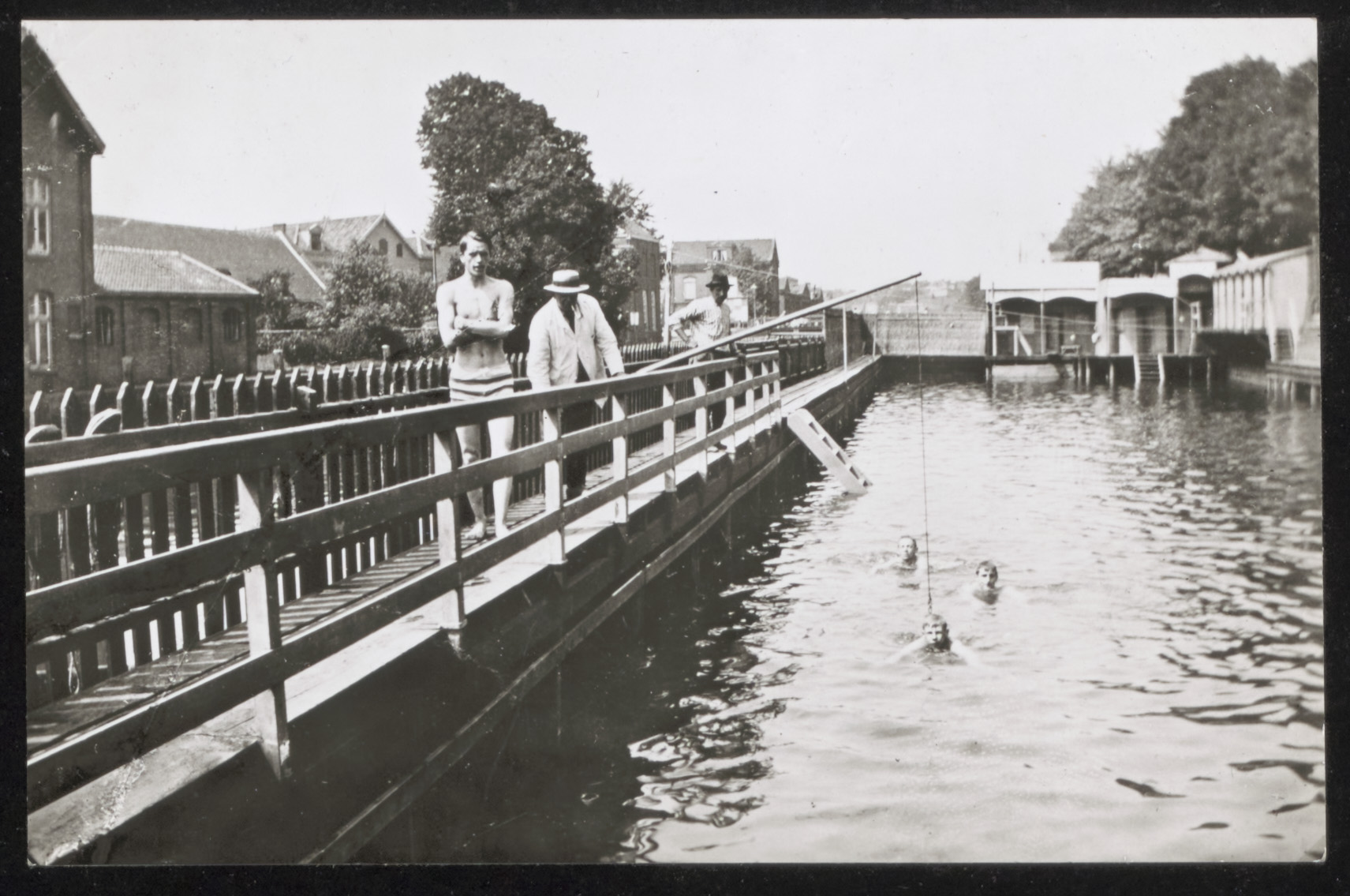 - Badmeester Reus geeft zwemles met een hengel in de Gemeente Zwemschool in de Spuihaven aan de zuidkant van de Vest.