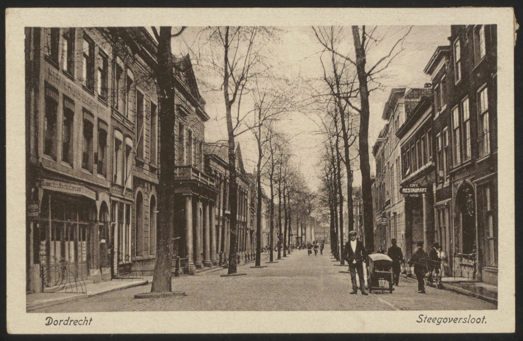 - Steegoversloot richting Sint Jorisbrug. Links koffiehuis / logement Kat. Militair tehuis Bibelot en de huishoudschool.