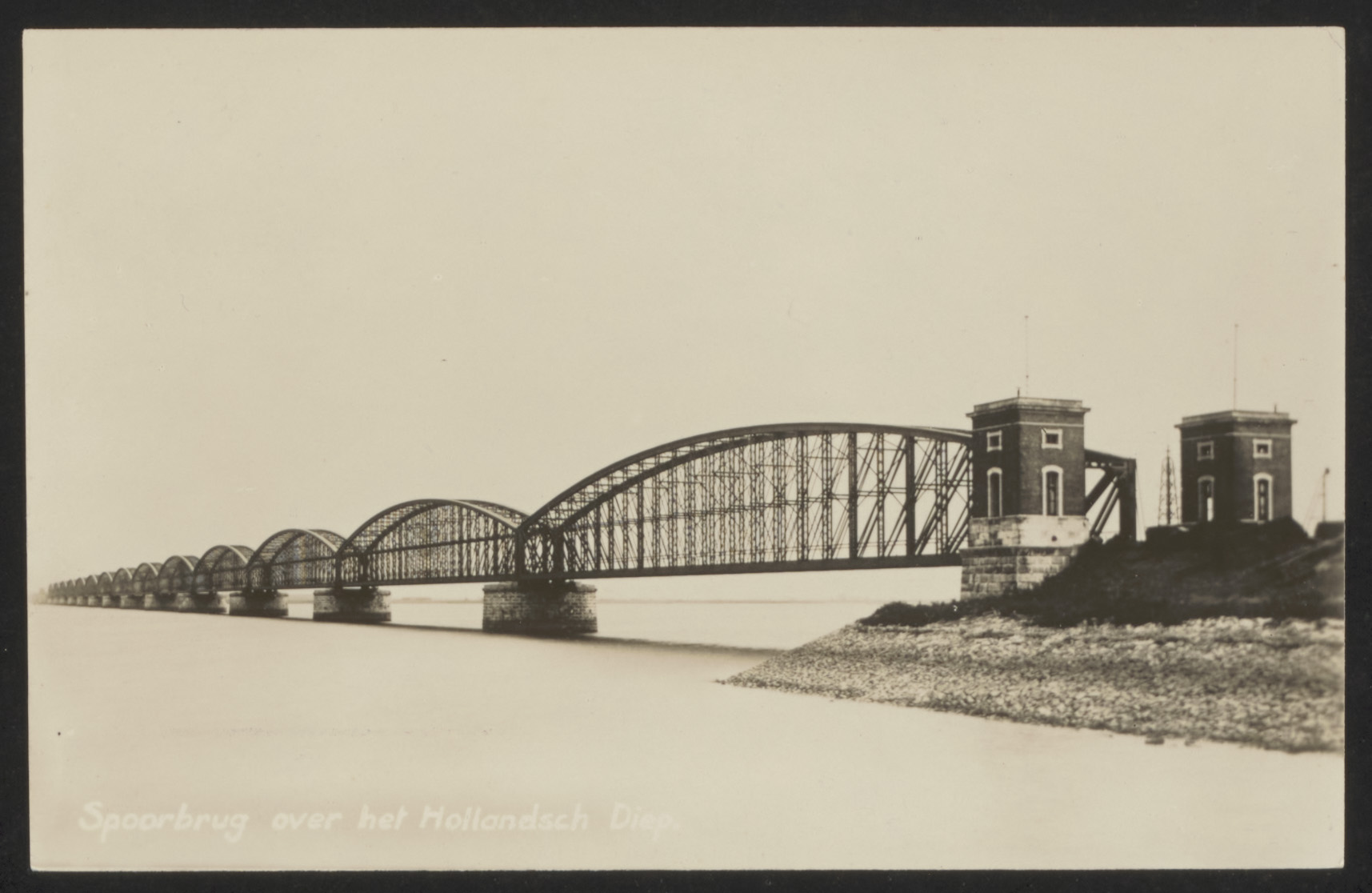 Moerdijk spoorbrug over het Hollandsch Diep, gezien vanaf Willemsdorp.