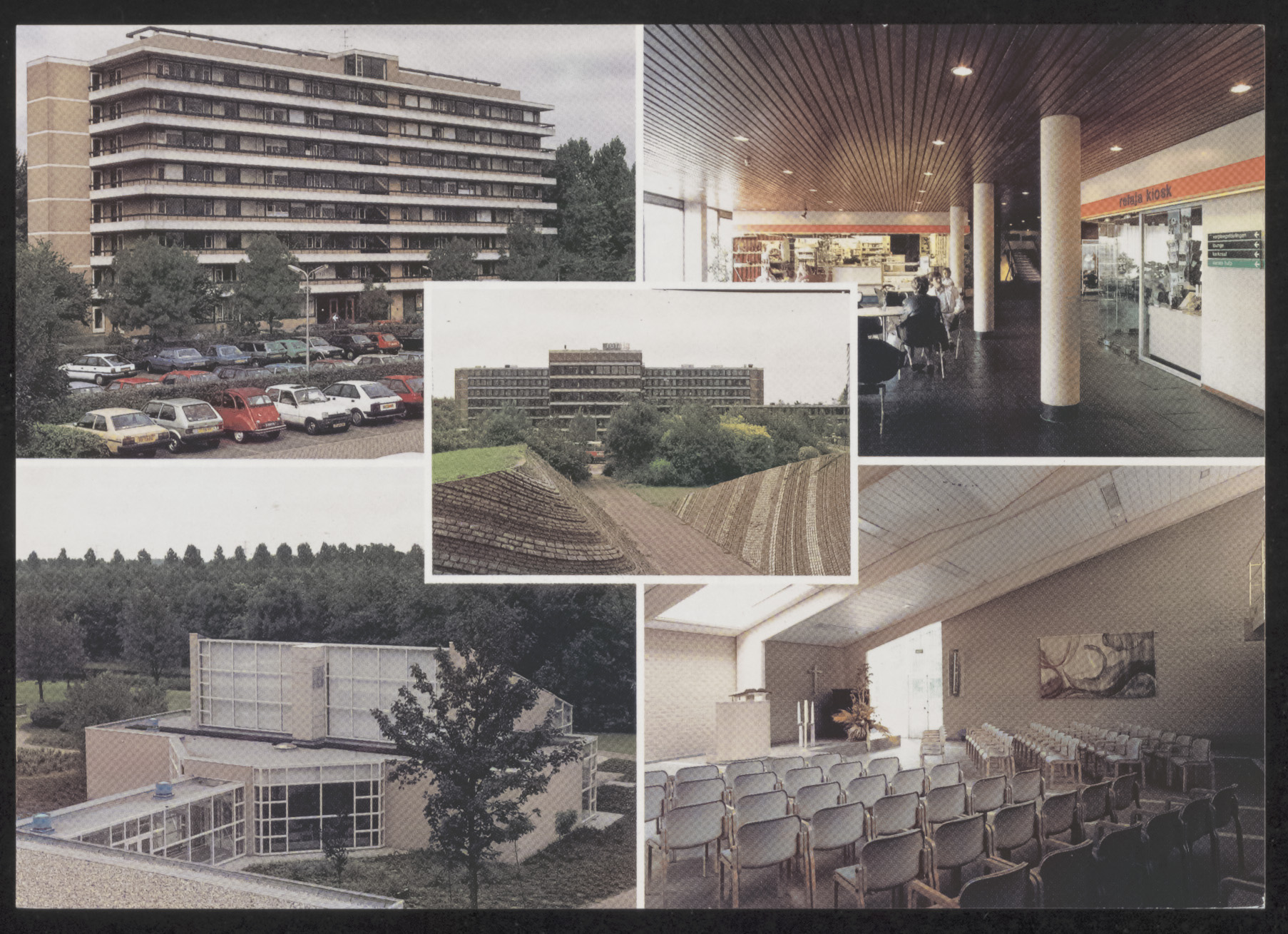Prentbriefkaart met impressies van het Refaja Ziekenhuis aan het Van der Steenhovenplein.