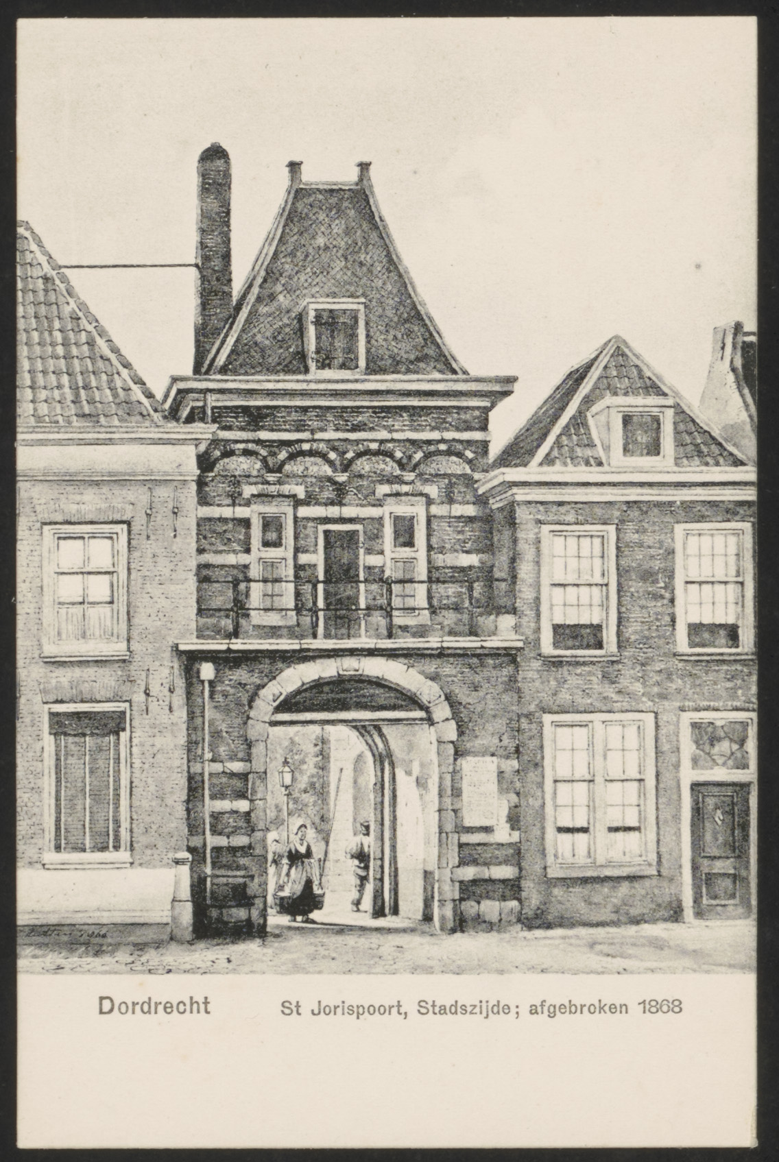 - Tekening door J. Rutten van de Sint-Jorispoort aan de kant van het Steegoversloot.