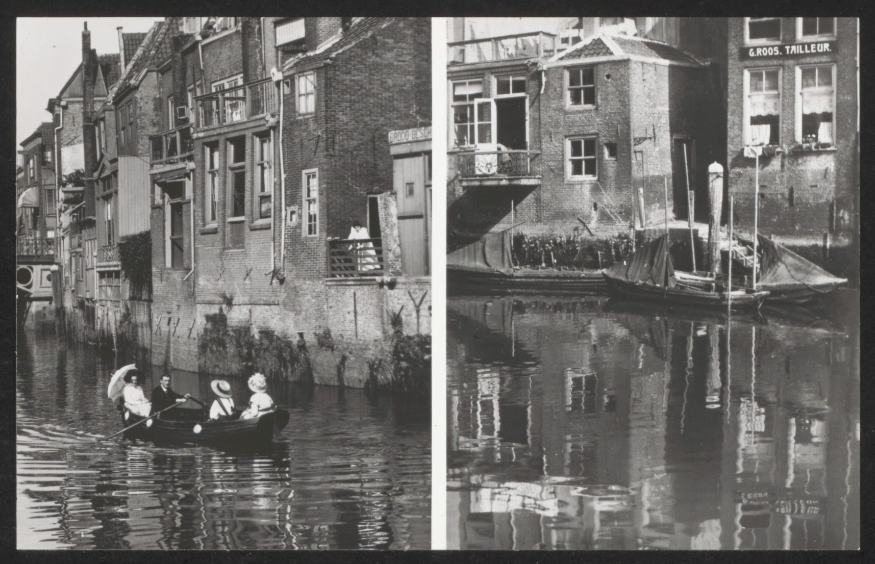 - Links: Voorstraathaven vanaf de Wijnbrug naar de Nieuwbrug. Rechts: Voorstraathaven gezien vanaf de Botermarkt naar de Kleine Appelsteiger.