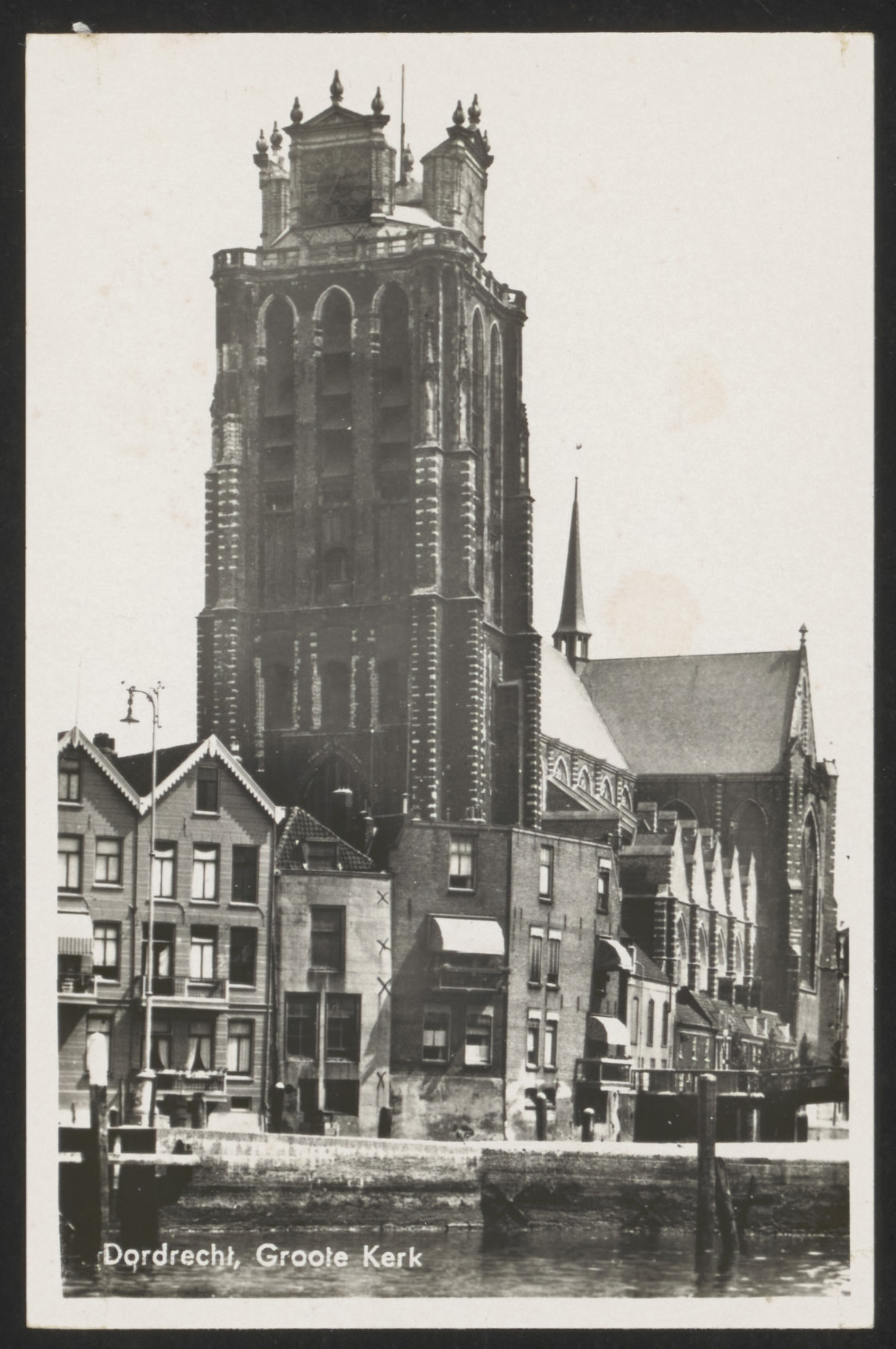- De Grote Kerk gezien over de Bomhaven naar de Korte Geldersekade.
