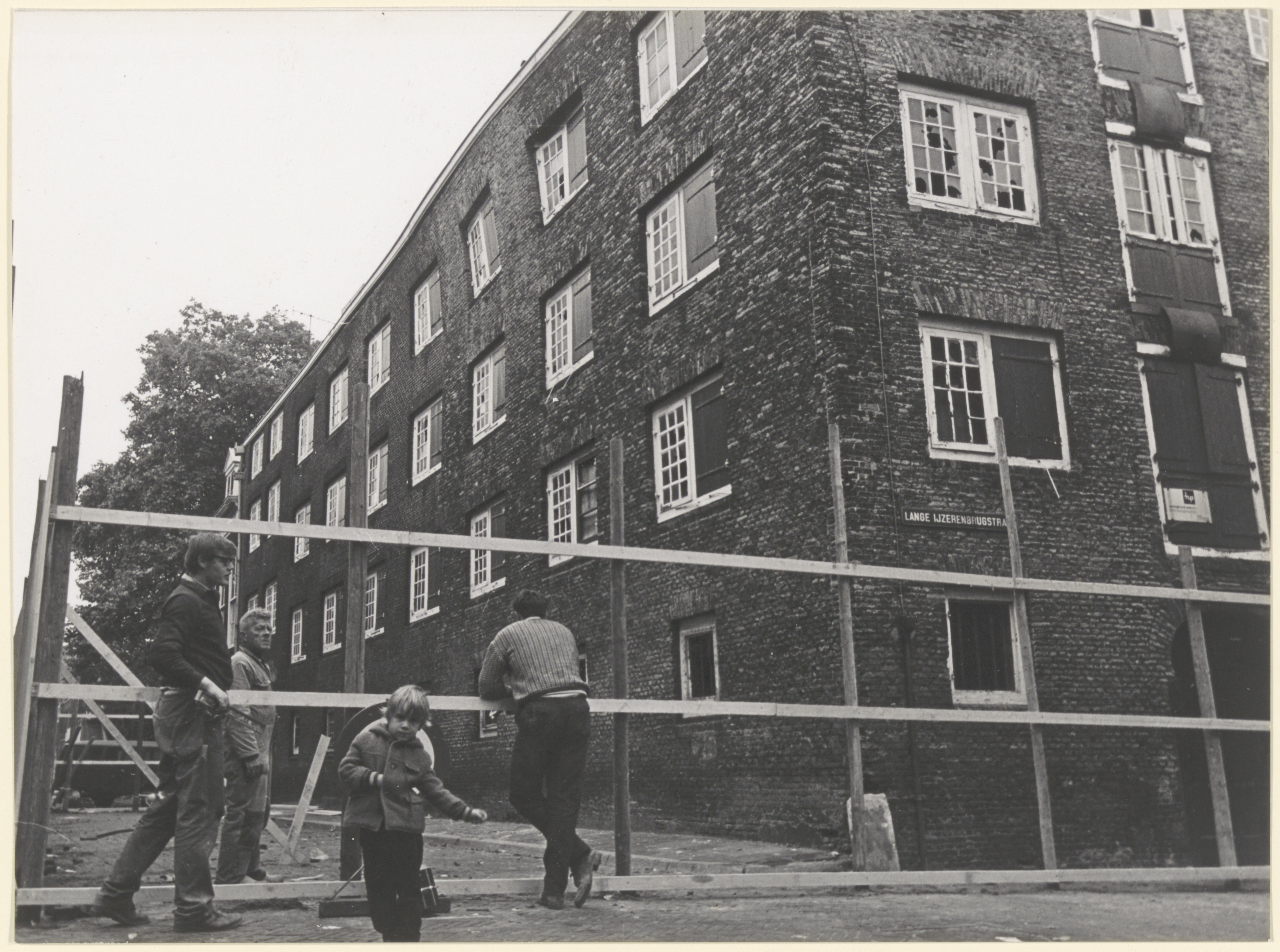 Afzetting rond een bouwvallig pakhuis op de hoek van de Lange IJzerenbrugstraat en de …