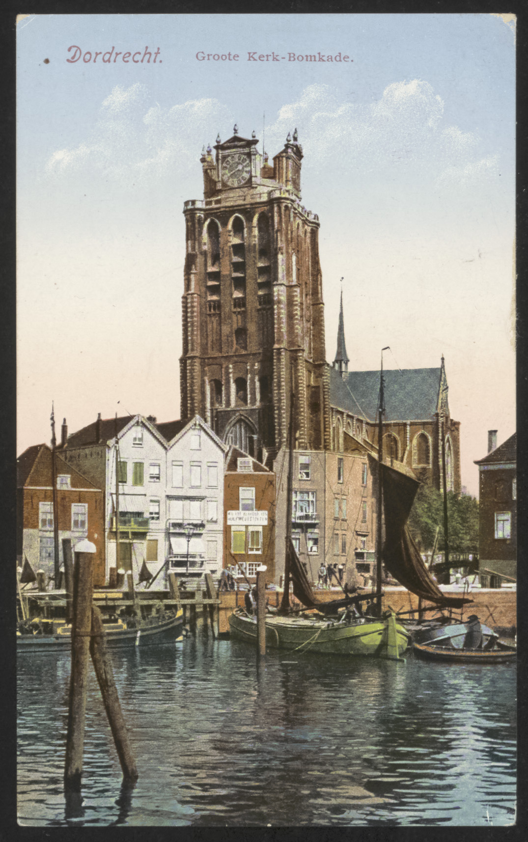 De Grote Kerk gezien over de Bomhaven naar de Korte Geldersekade.