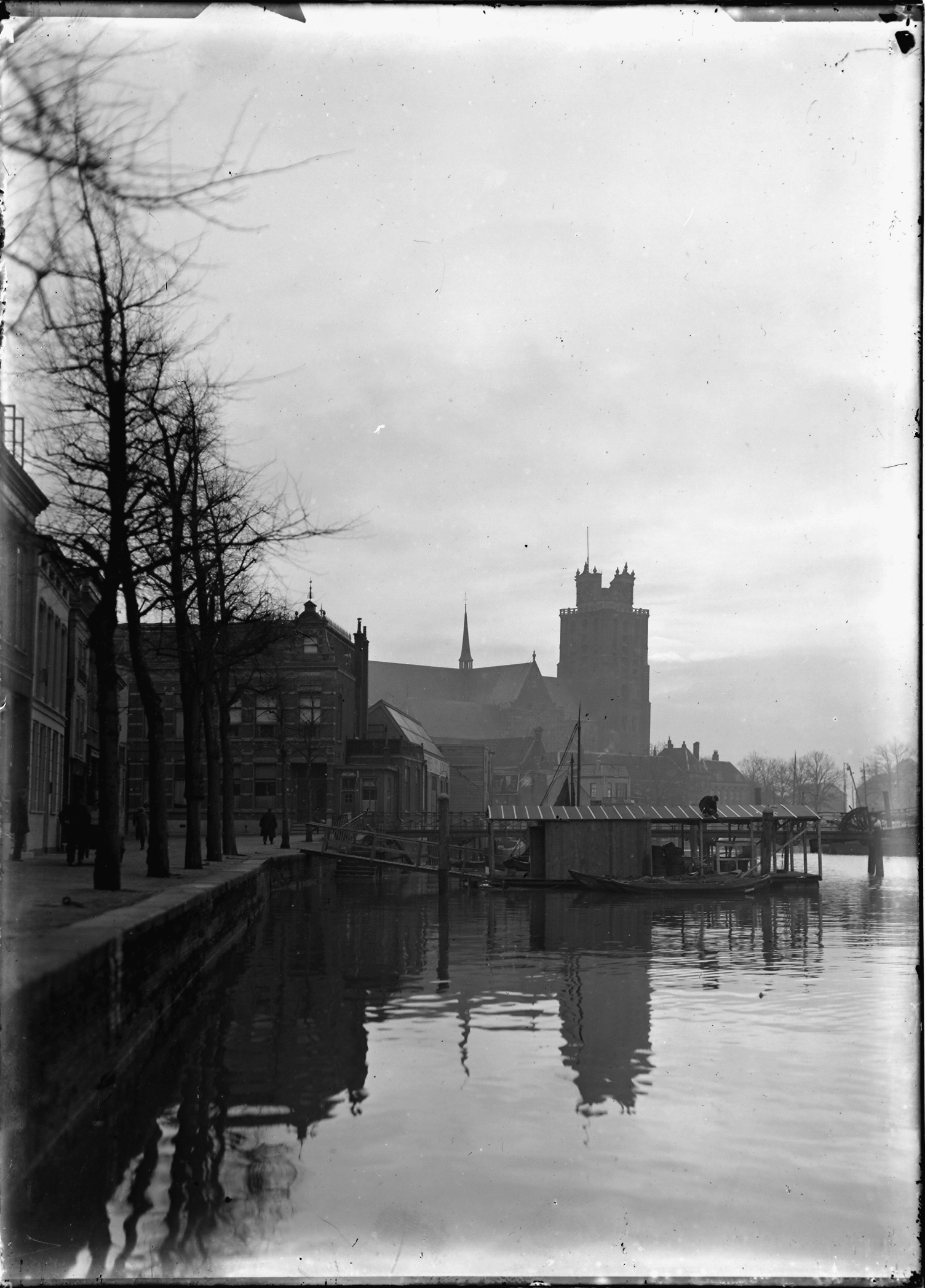 - Visvlot in de Nieuwe Haven naast de Lange IJzerenbrug. De kade links is de Knolhaven, de straat in het verlengde van de brug is de Vleeshouwersstraat. Rechts vóór de Grote Kerk ligt het Rijksmagazijn.