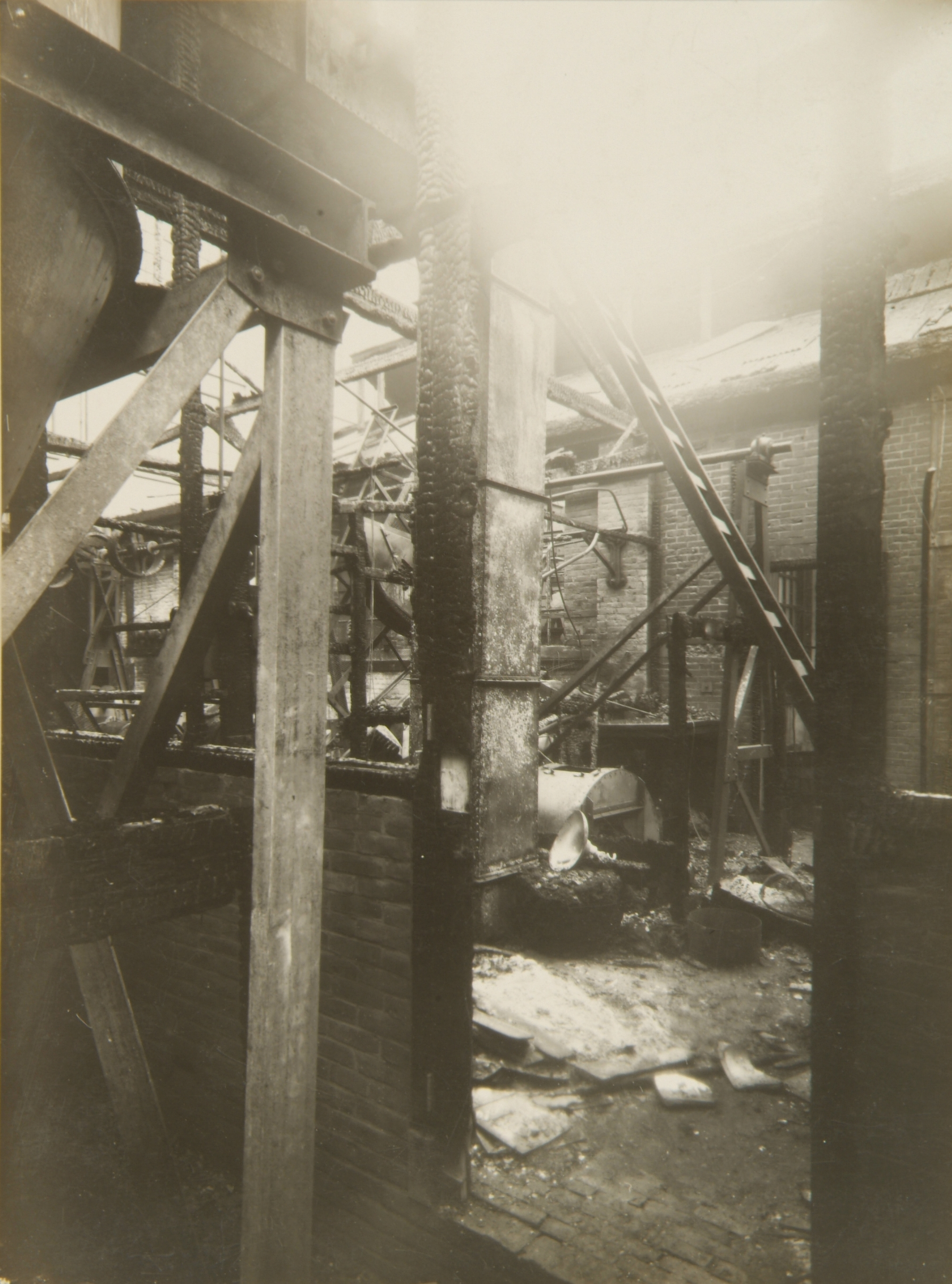 - Interieur van de Meterfabriek na de brand van 14 en 15 februari 1925.