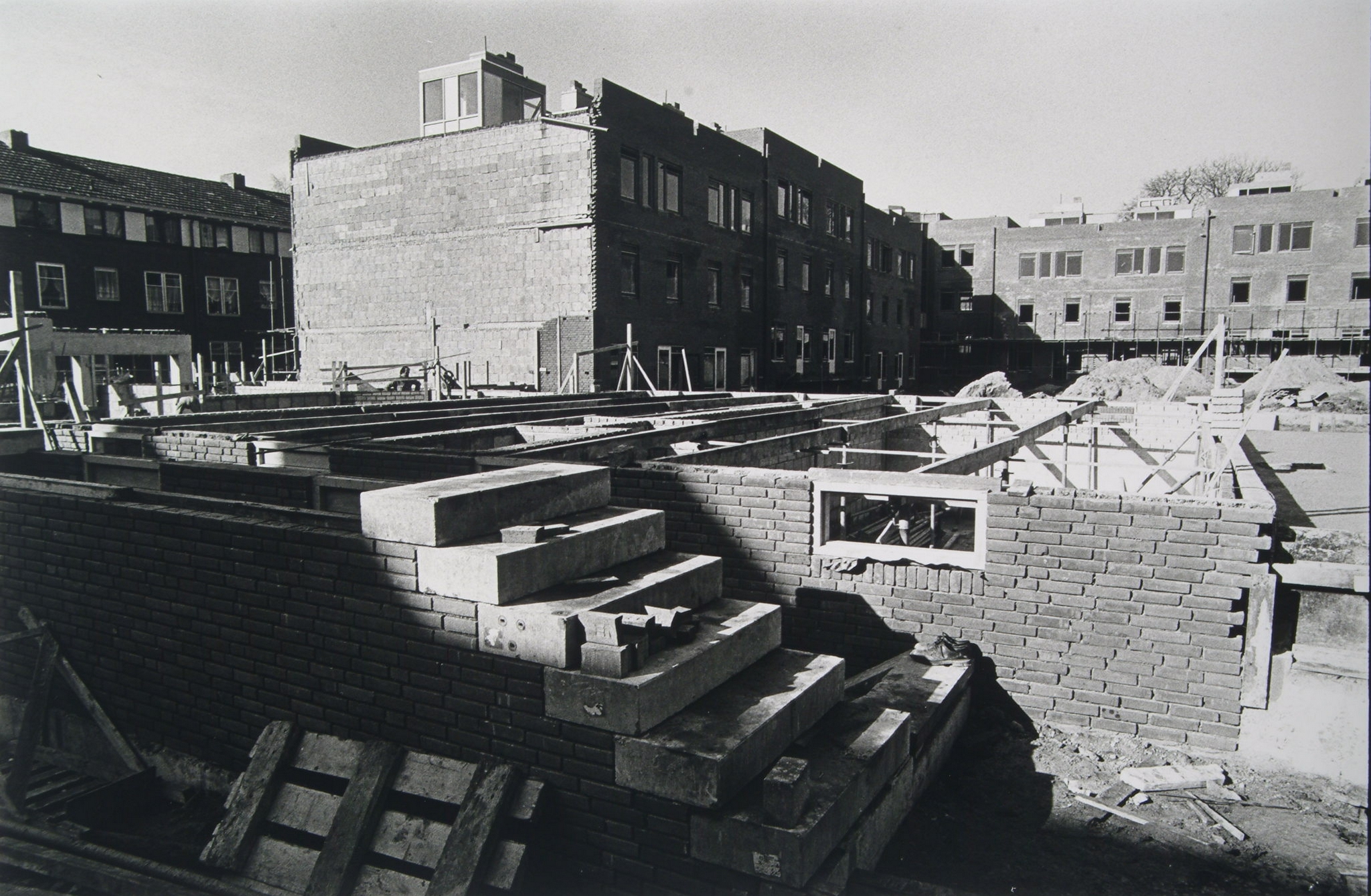 Bouw van een blok huizen aan de Heer Heymansuysstraat (links), Vrankenstraat, Wijngaardstraat (voorgrond) en Nieuwkerksplein