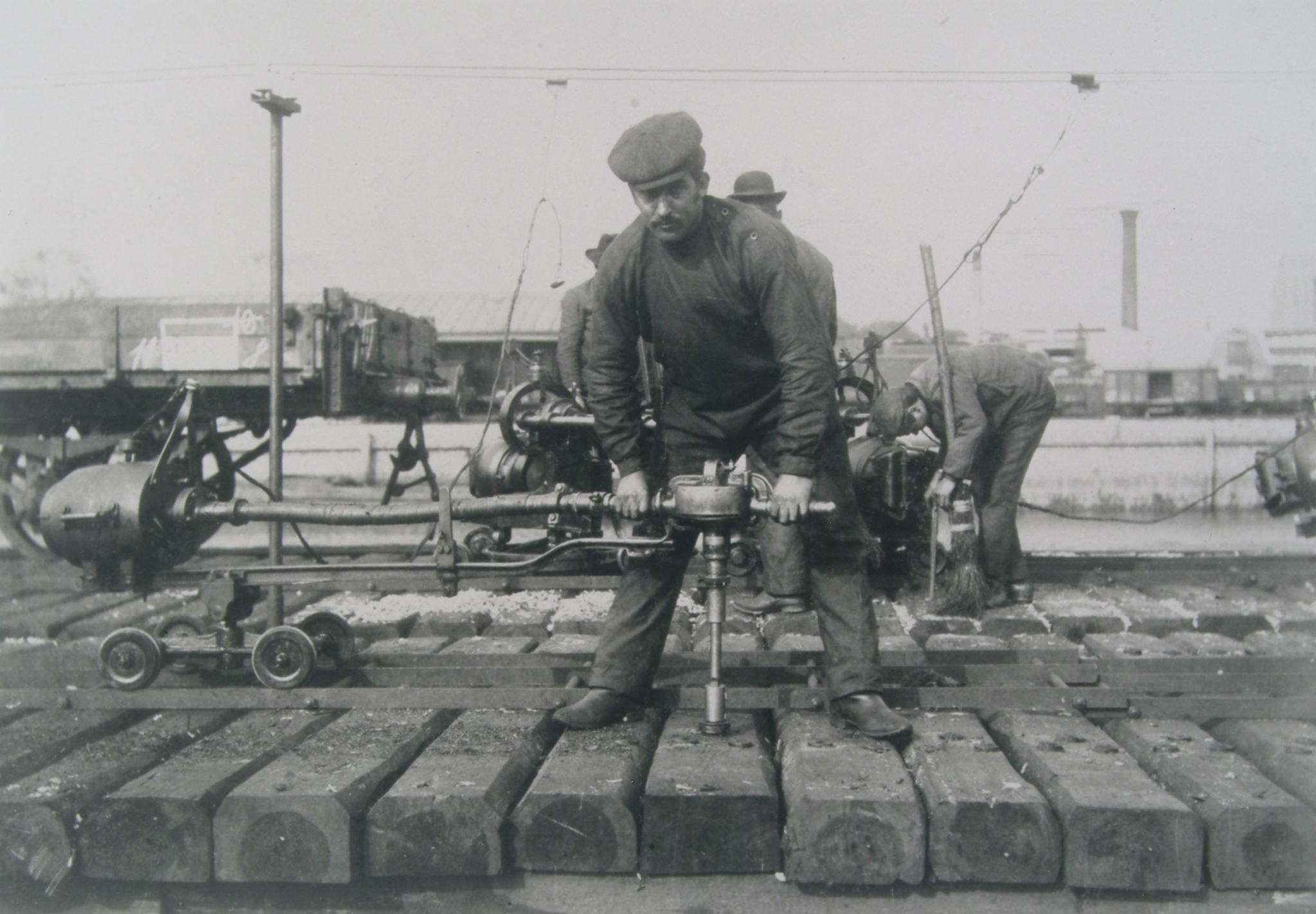 - Het boren van gaten in spoorbielzen bij de creosoteerinrichting van de spoorwegen aan de Spoorweghaven. Er was ook een vestiging aan de Van Leeuwenhoekweg.