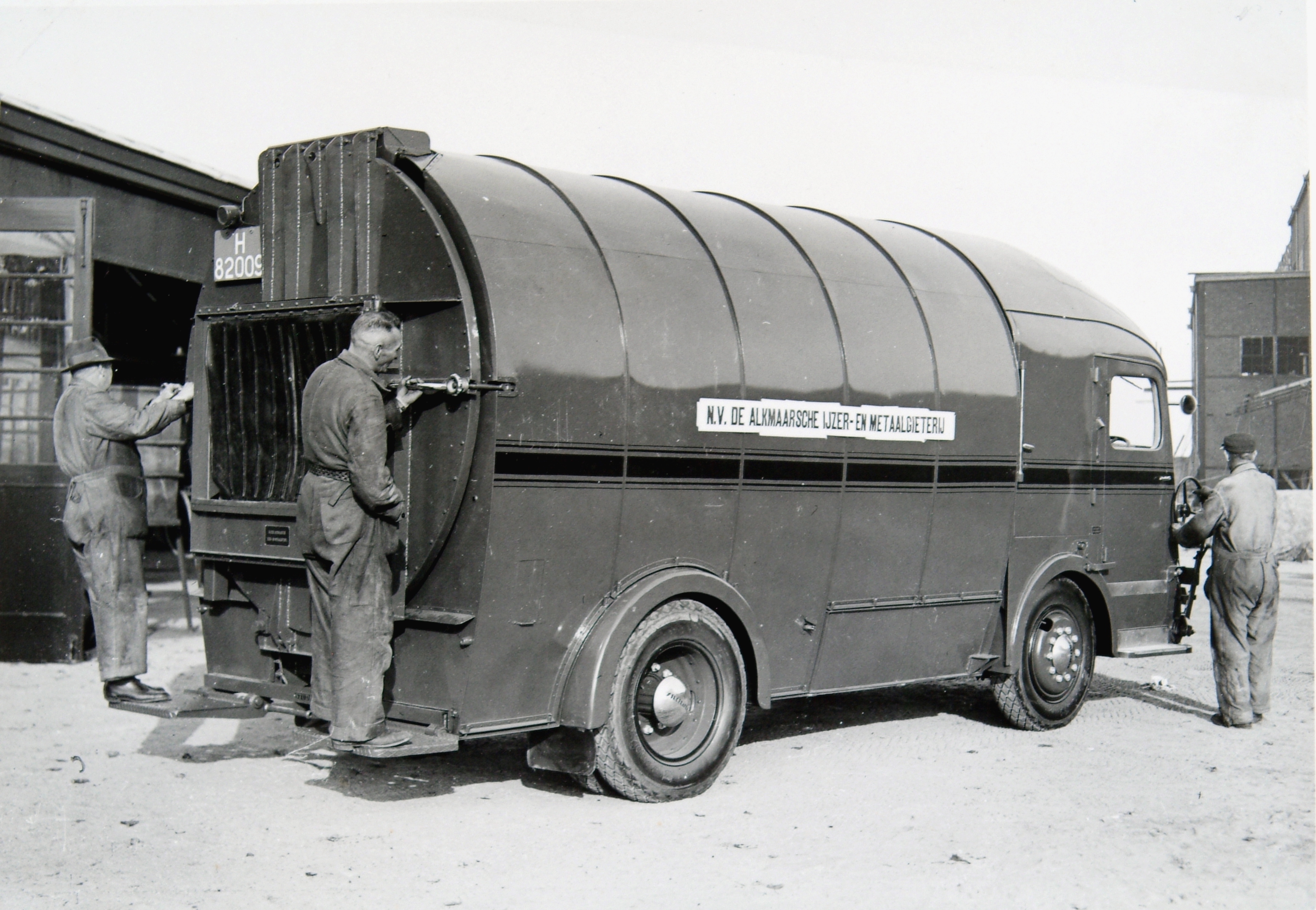 Een nieuwe vuilniswagen van de Gemeentelijke Vuilverbranding. Deze auto kon ook vanaf …
