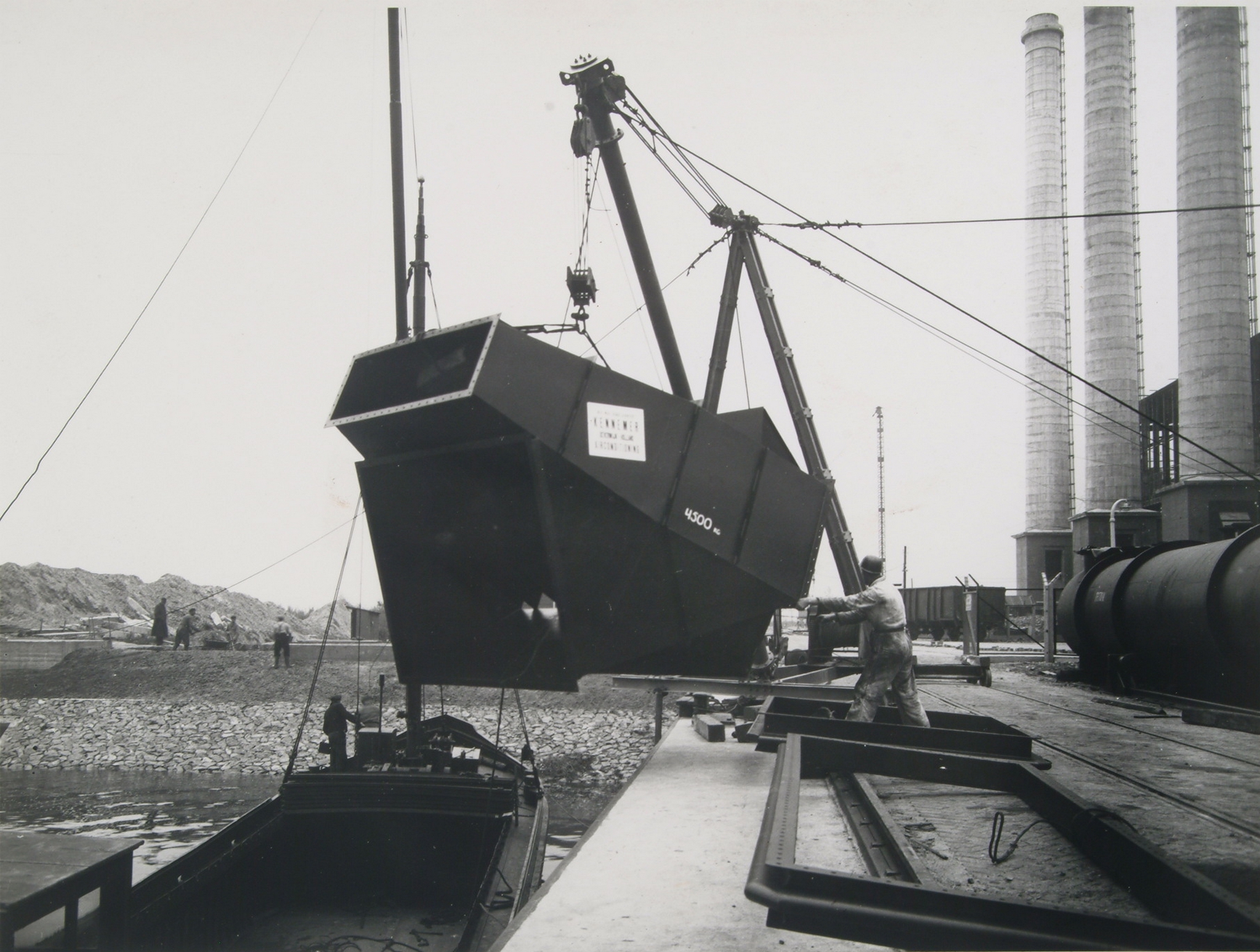 Plaatsing van een Foster Wheeler ketel door Werkspoor Amsterdam in de centrale Merwedehaven