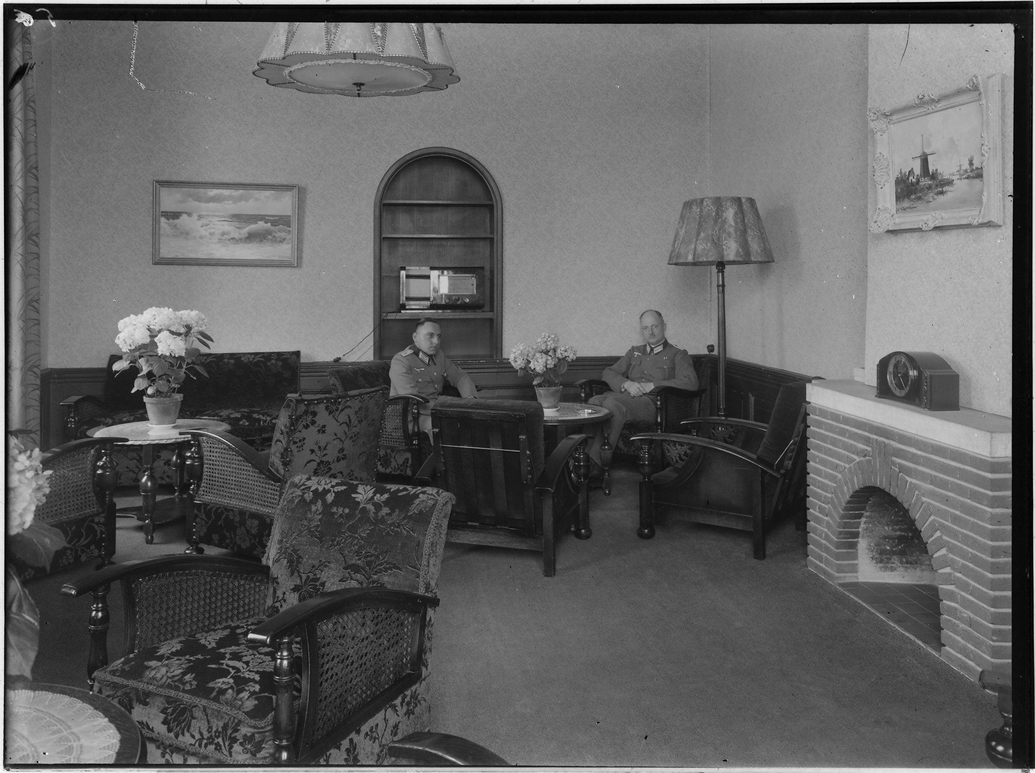 - Duitse militairen in een kamer met radio in Wehrmachtheim villa Simpang